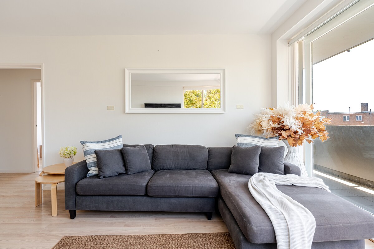 Bu sakit, dəbli məkanda dincəlin və dincəlin. 1 yataq otağı, yeni təmir edilmiş birinci mərtəbə mənzil (pilləkən yoxdur), kondisioner, açıq havada ayrıca veranda, bbq, qəhvə maşını, mikrodalğalı soba, soba, Sonos, paltaryuyan/quruducu, panoramik mənzərəli şərikli dam örtüyü. Bondi Çimərliyinə 5 dəqiqəlik məsafədə, sahil gəzintisi və kafelərə, avtobus dayanacağına 1 dəqiqəlik məsafədə. Parkinqlə.