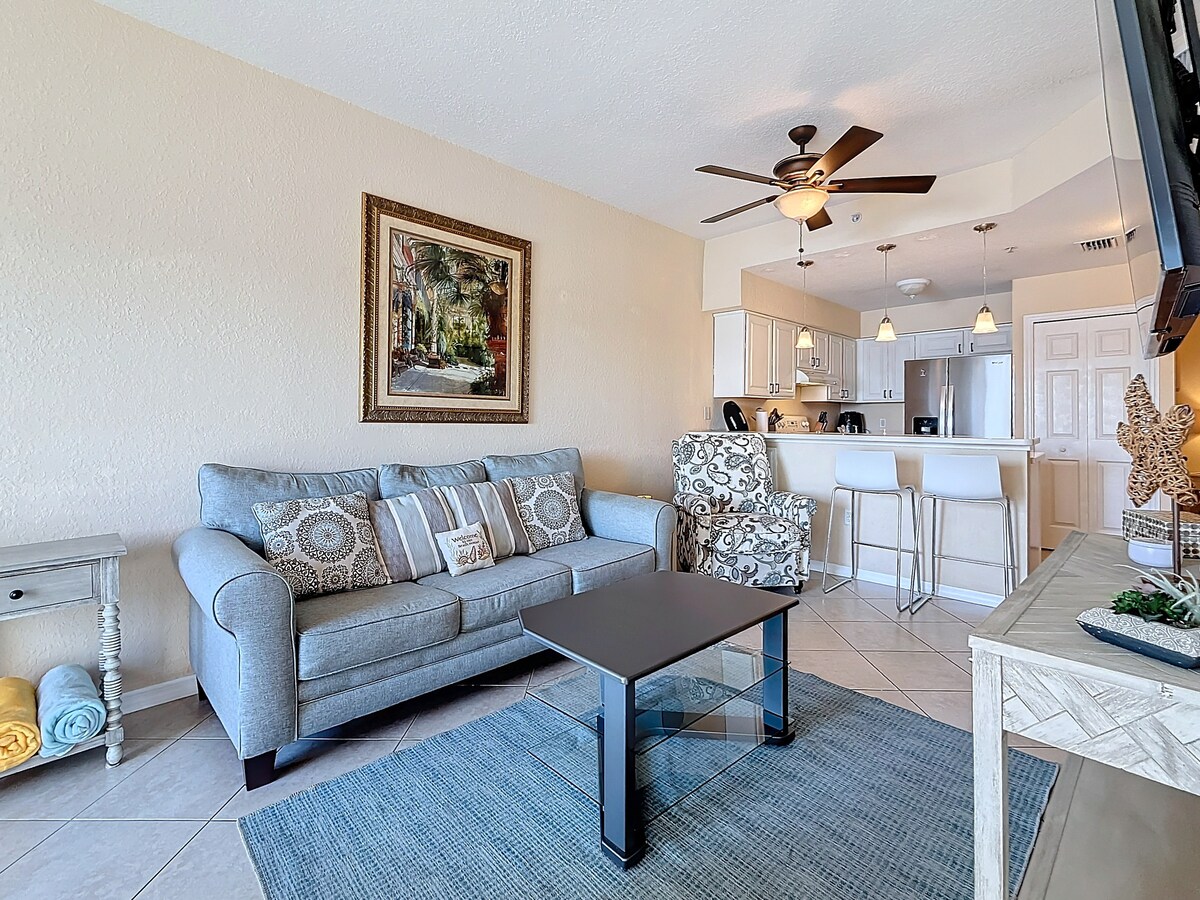 Enjoy coastal living in this top-floor beach condo w/ beautiful water views & unbeatable walkability. Just steps to the beach, dining & local shops, this bright and welcoming retreat features an open living space, private balcony overlooking a marina, fully equipped kitchen & stylish coastal décor throughout. Guests enjoy provided beach gear & convenient parking for 1 vehicle. Relax by the pool, watch boats cruise by & soak up a laid-back beach lifestyle in this highly loved, guest-favorite home