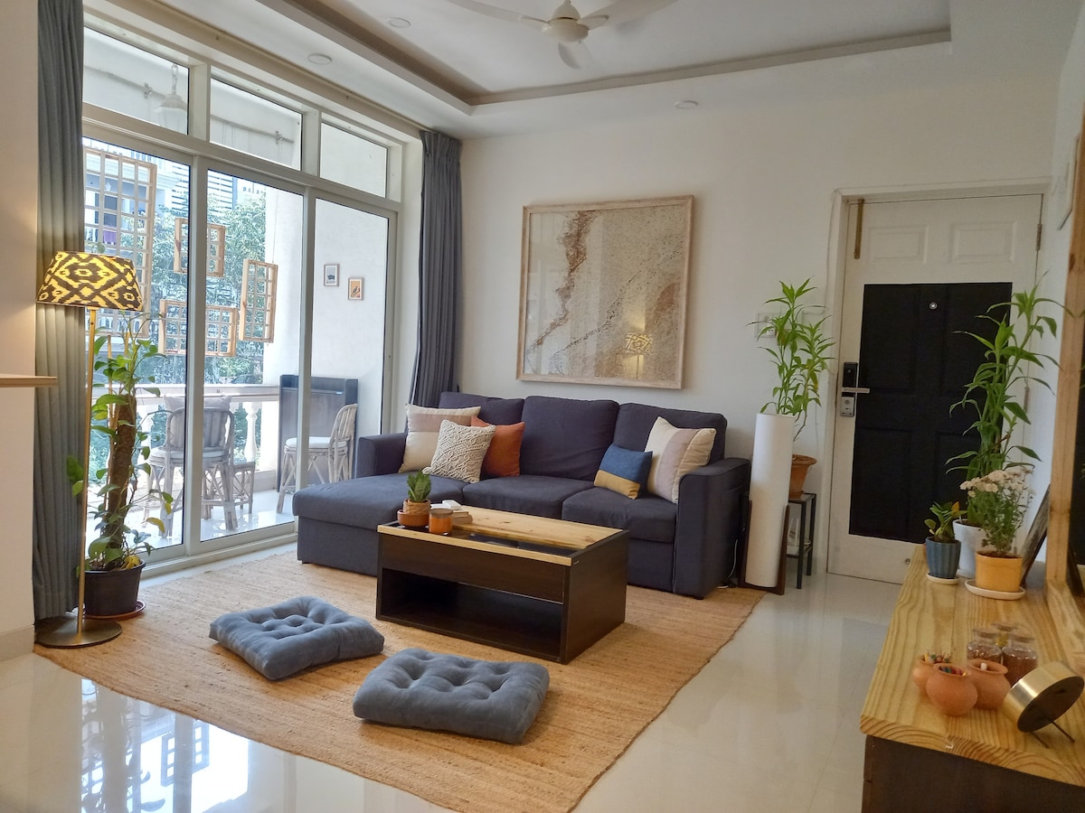Mezzanin ilə sevərək dizayn edilmiş studiya mənzilimizdə dincəlin. Hündür tavanı, üzən pilləkəni, asma bitkiləri olan evimiz füsunkar hisslər üçün nəzərdə tutulub. Dağda günəşin gözəl mənzərəsi olan qəhvənizdən zövq alın. Ev 24*7 təhlükəsizliyi ilə qorunan yaşayış cəmiyyətində yerləşir. Beləliklə, özünüzü evimizdə təhlükəsiz hiss edirsiniz. Qonaqlarımızı döşəkağı-dəsmaldan tutmuş tualetlərə, təraş dəstlərinə, dəsmal başmaqlarına, gecə yarısı üçün qəlyanaltılar və daha çoxuna qədər hər şeylə təmin edirik.