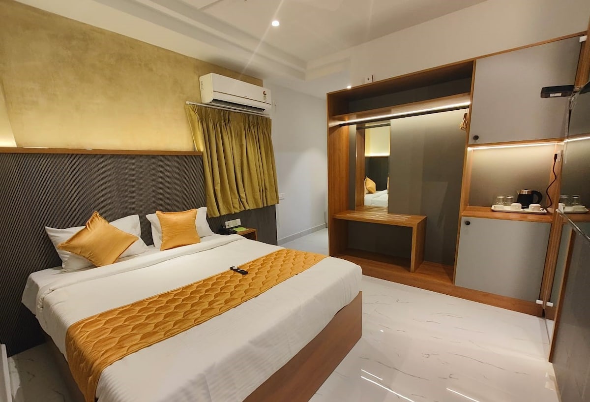 Experience luxury and comfort in our Executive Suite in Hyderabad, perfect for business travelers or couples seeking a premium stay. This elegantly furnished suite features a spacious bedroom, modern ensuite bathroom, high-speed Wi-Fi, air conditioning, and a dedicated work desk. Located in a prime area with easy access to IT hubs, shopping centers, and restaurants, it offers both convenience and class.