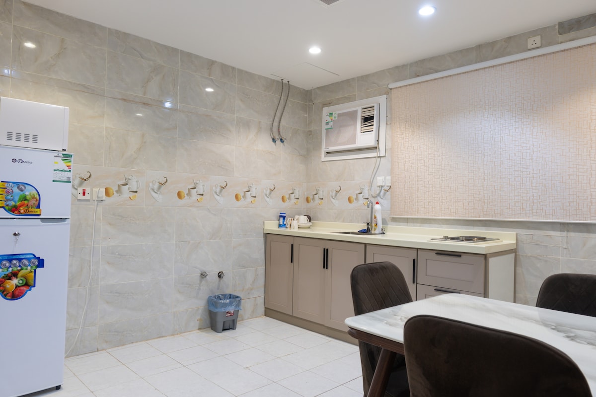 Cozy 1BR Apartment with Living Room & Small Kitchen – Special Discount ✅ Enjoy a comfortable stay in a stylish apartment near the Holy Mosque, perfect for short or long stays. It features a king-size bed, modern bathroom, self check-in, high-speed WiFi, Smart TV, and a kitchenette with kettle, microwave, mini fridge, and stovetop. The apartment is 10 minutes by car to the Haram and 7 minutes walking to the shuttle bus. Elevator access and essential amenities ensure a relaxing stay.