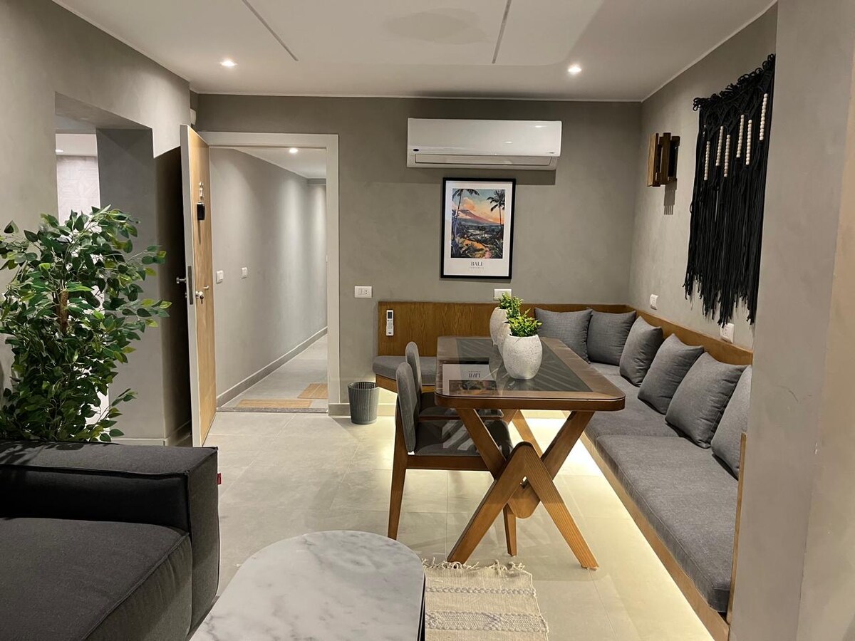 Kememlendə xoş gəlmisiniz! Misir mədəniyyətini müasir rahatlıqla birləşdirən Mohandeseen-də sənətlə dolu mənzil. 2 yataq otağı, 3 qəşəng vanna otağı, rahat boho yaşayış sahəsi, geniş yemək sahəsi və yaşıl eyvanı var. İncəsənət həvəskarları və orijinal, lakin rahat Qahirədə qalmaq istəyən səyahətçilər üçün mükəmməldir. - Sabit və Sürətli Wi-Fi - Yaxınlıqda çoxlu mağazalar, kafelər və restoranlar var. Təsdiq etməzdən əvvəl ev qaydalarını yoxlayın!