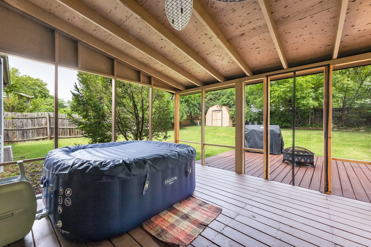 Hilltop Ranch Evimizə xoş gəlmisiniz! Bütün ailəniz və ya bir neçə cütlük üçün rahat tətil tapa bilərsiniz. Birinci mərtəbədə hamam-tualetlə öyünən əsas yataq otağı, cakuzi vannası, tam təchiz olunmuş mətbəx, qaz buxarısı və əlavə 2 avtomobillik qaraj da daxil olmaqla 1800 kv metr sahəsi var. Zirzəmidə dördüncü yataq otağı, hamam və televizor var. Yemək otağına bitişik veranda, kömür qril və tam ölçülü cakuzi - hamısı bütün qrupunuzu əyləndirmək üçün mükəmməldir.