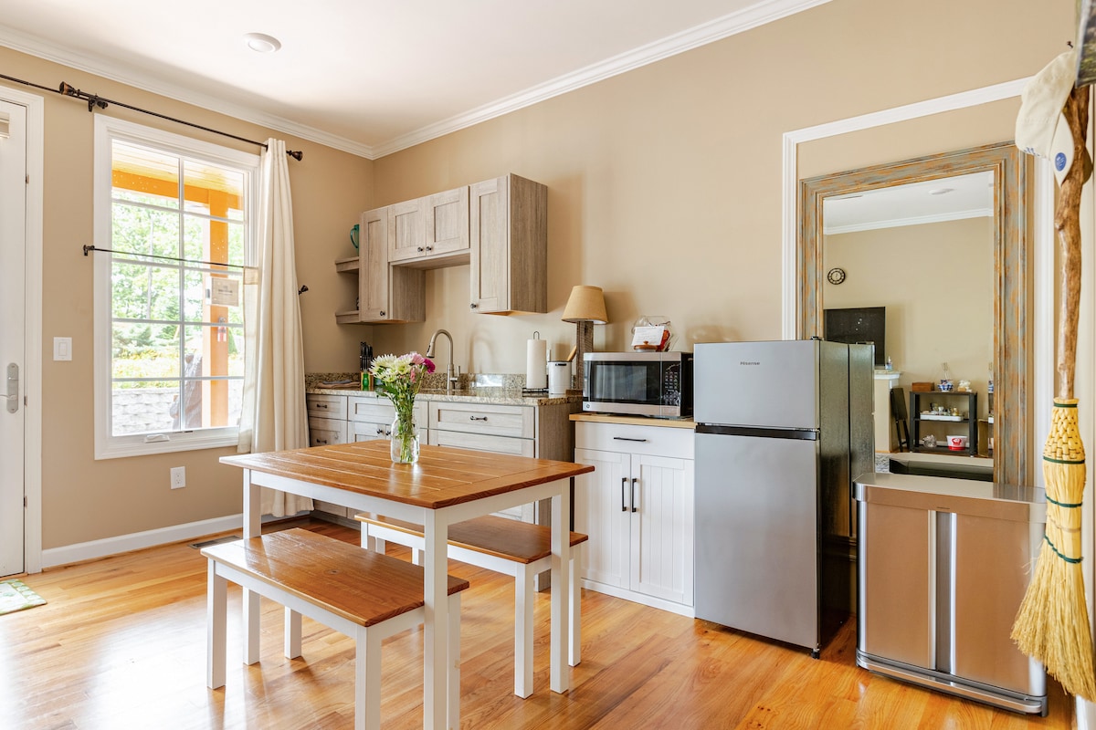 Sakit meşəlik ərazidə yerləşən, Eşvil şəhər mərkəzindən cəmi 14 dəqiqəlik məsafədə, Hetli Puentə 25 dəqiqəlik məsafədə və Uivervildəki N. Meyn küçəsindən ¼ mil məsafədə yerləşən ayrıca studiya mənzili. Qonaq Süitası, Qərbi Şimali Karolinanın ən yaxşı turistik yerlərinə asan giriş imkanı ilə meşəlik sakitliyi mükəmməl şəkildə birləşdirir. Uzaqdan iş və ya işgüzar səfərlər üçün ideal olan xüsusi iş sahəsi və yaxınlıqdakı qəhvə mağazalarından yararlanın. Qısamüddətli və ya uzunmüddətli qonaqlamaları qəbul edirik və ziyarətinizi unudulmaz etmək üçün buradayıq!