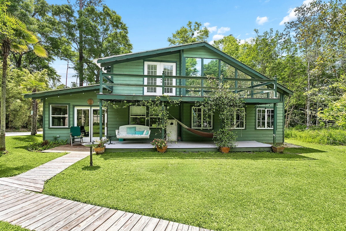 - Escape to a tranquil 30-acre retreat with lagoons, wooden bridges, and river access - Enjoy scenic trails, private beach areas, and elevated walkways over the water - Relax in a renovated cottage with a stocked kitchen and high-speed WiFi - Book now for a peaceful getaway surrounded by Louisiana’s natural beauty *We do accept dogs (3 total). Pet fee is $35 per pup per night. *We as the host pay Airbnb's Service Fees for you! :)