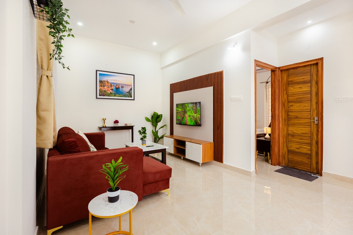This is a comfortable and functional 1BHK located in a residential apartment in BTM Layout 2nd Stage. It’s well suited for longer stays and guests who value a practical home setup with a usable kitchen for regular Indian cooking. As this is a shared residential building, guests should expect normal city sounds and manage basic cleanliness and trash disposal during their stay.