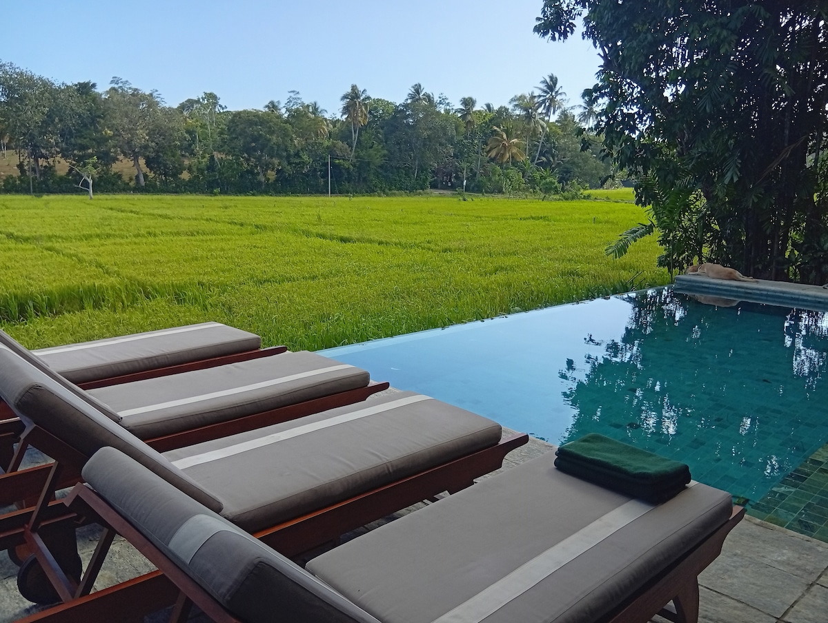 Çeltik tarlaları arasında, kokos palmaları və quşların səsi ilə əhatə olunmuş ev. Kənd həyatına yaxın, lakin məşhur gözəl çimərliklərə sürətli tuk gəzintisi ilə tənhalıq və əlaqənin nadir bir qarışığı. Unikal təcrübə və Şri-Lankanın kənd yerlərinin gizli gözəlliyinə nəzər salmaq istəyən təbiətsevərlər üçün. Tropik bağda gəzintiyə çıxın, təbii hovuzda sərinləyin və bağımızdakı inqrediyentlərdən hazırlanmış yeməklərin dadına baxın. Sakitləşin, təbiətlə və ada həyatının sakit ritmi ilə yenidən əlaqə qurun