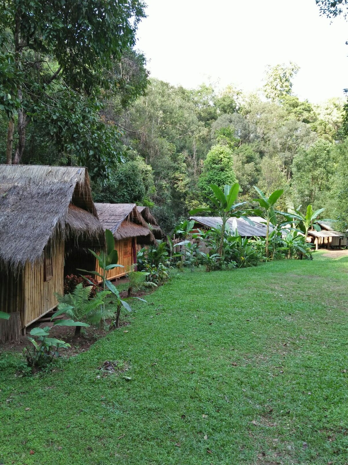 our bungalow is bamboo houses,the huts feature traditional grass roots. near the Karen hill tribe village, views of the jungle, a clam and peaceful camping - ground surrounded by waterfall,river and mountain. the house is suited for couples or friends with a gueen size bed and can add in 2 extra bed for family. you can book day trips and stay overnight.