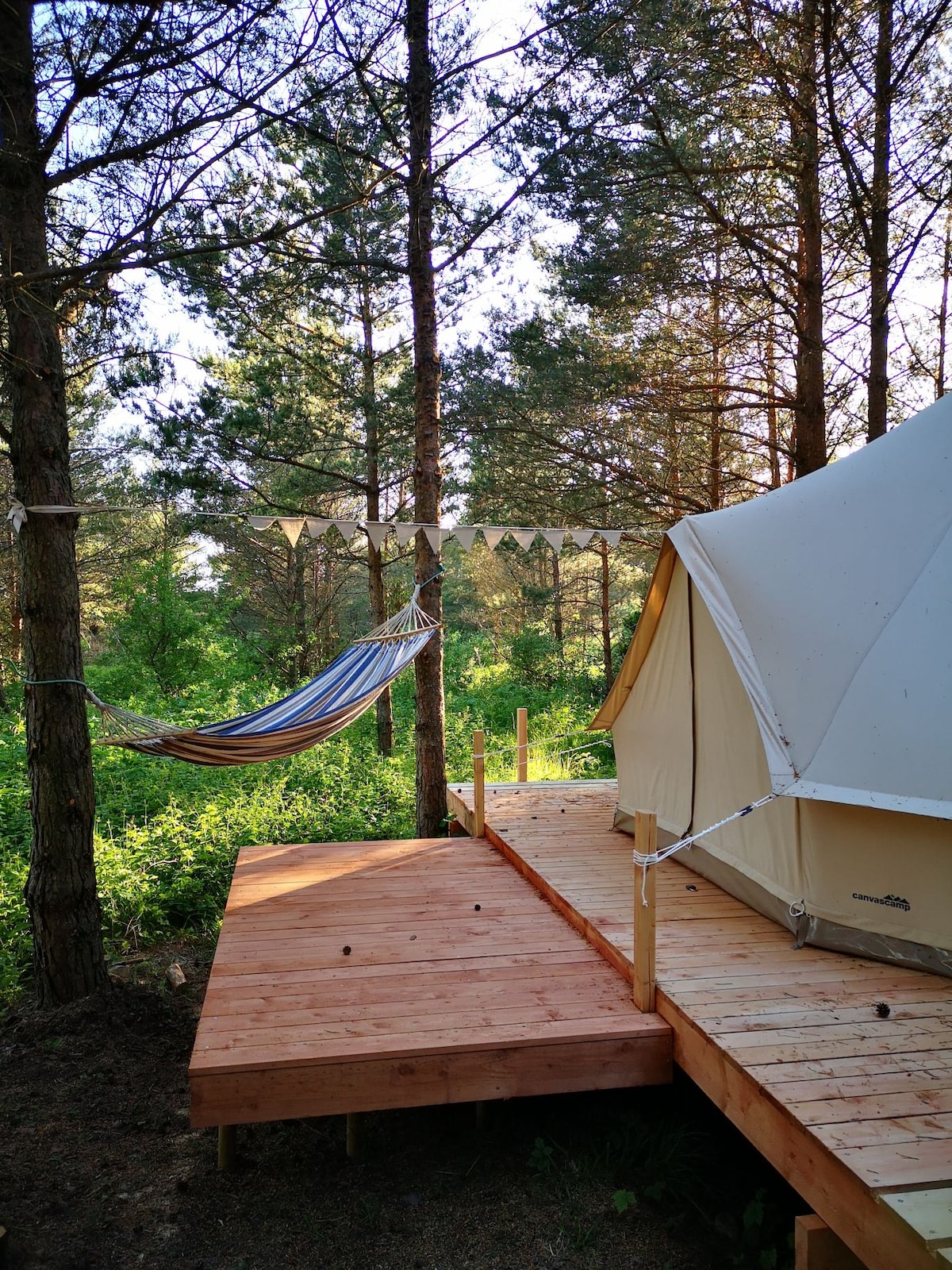 Sääremaa Glamping Saaremanın ən böyük ikonlarından biri olan Sõrve mayakının yaxınlığında yerləşir. Gözəl və rahat zəng tipli çadır, açıq havada mətbəx, quru tualet və duş var. Çadırın daxilində 180x200 çarpayı kimi qoşula bilən 2 çarpayımız (80x200) var. Həmçinin 2 komfortlu stul və 1 masa. İstilik üçün gözəl çuqun buxarı və elektrikli istilik ventilyatoru var. Açıq havada mətbəxdə kiçik soyuducu, soba və gözəl yemək hazırlamaq üçün lazım olan bütün avadanlıqlar var.