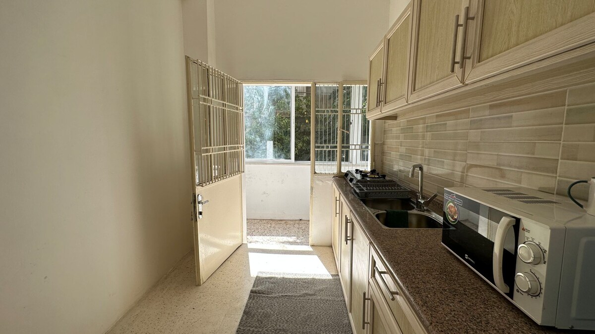 Welcome to our spacious 3-room apartment with a balcony and a fully equipped kitchen — ideal for families and groups. Enjoy a comfortable stay in a great location near attractions, shops, and restaurants. Amenities & Fees: • Fan and heater in each room (no air conditioner) • Heater: 5 JD per heater per day (upon request) • Washing machine: 3 JD per wash • Early check-in: 3 JD (subject to availability) • Late check-out: 3 JD (subject to availability)