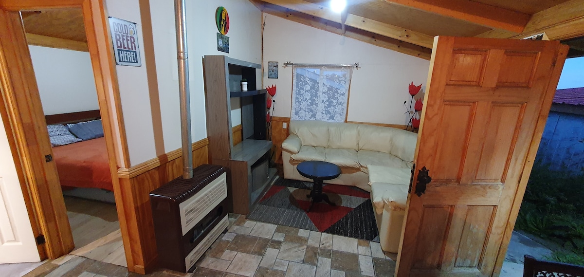 Cabaña de montaña, situada al inicio del trekking Dientes de Navarino en pleno bosque de lengas y Cohigues. Ideal para descansar y rodearse de tranquilidad. Ubicada a tan solo 10 minutos del centro de la ciudad en auto, a 30 minutos caminando, calefacción con estufa a leña para relajarte después del trekking. Ideal para aventureros.
