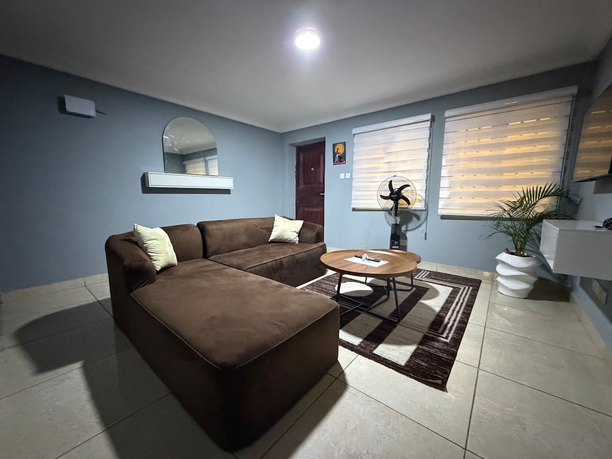 Sidemiwa Apartment - MMA Beynəlxalq Hava Limanından 5 dəqiqəlik məsafədə, xüsusi təhlükəsiz lüks qonaqlama Laqosda yerləşir. Dinc və zövqlə dizayn edilmiş bu istirahət məkanında dincəlin. Müasir üslubla rahatlığı qarışdıran məkan rahat mebellər, ətraf mühitin işıqlandırılması və sakitləşdirici atmosfer təklif edir. Həm iş, həm də istirahət üçün idealdır. Bura istirahət edə, enerji toplaya və özünüzü evinizdəki kimi hiss edə biləcəyiniz xoş məkandır. 24/7 Elektrik, Günəş Enerjisi, sürətli Wi-Fi İnternet.