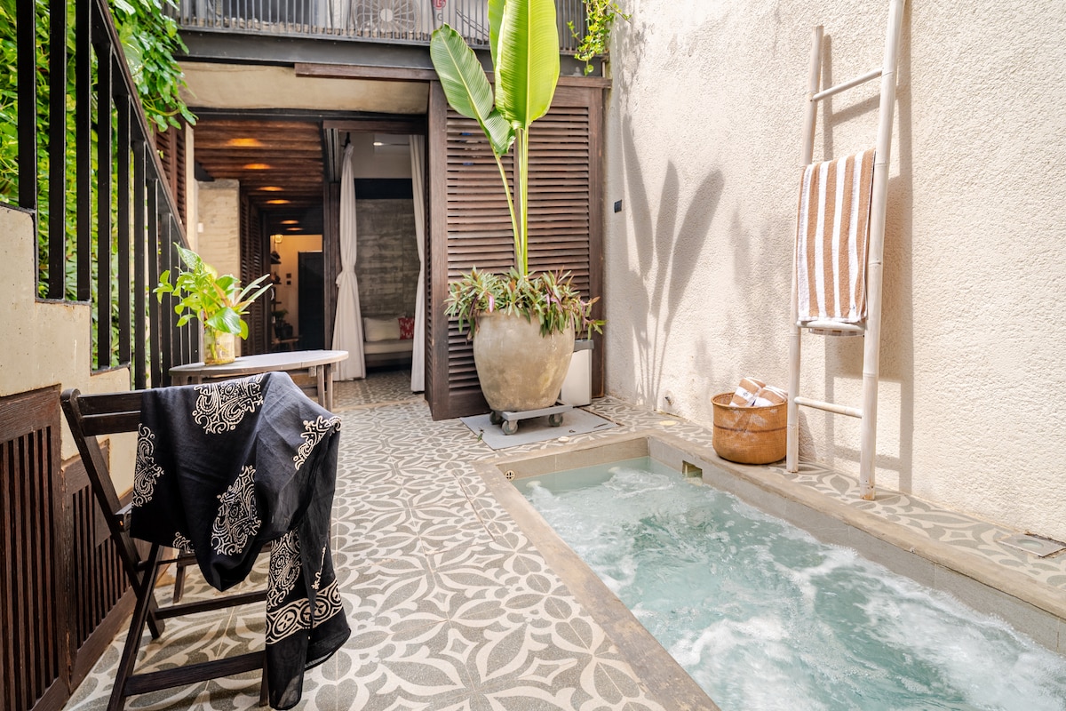 This 2-story Old City Villa features gorgeous colonial architecture, modern furnishings, 3 bedroom suites with private bathrooms, an additional social bathroom, a private rooftop terrace for sunbathing, and a large private splash pool. Stunning Villa is part of a 6-villa complex with 24/7 security, a lush courtyard, and a shared plunge pool in the courtyard.