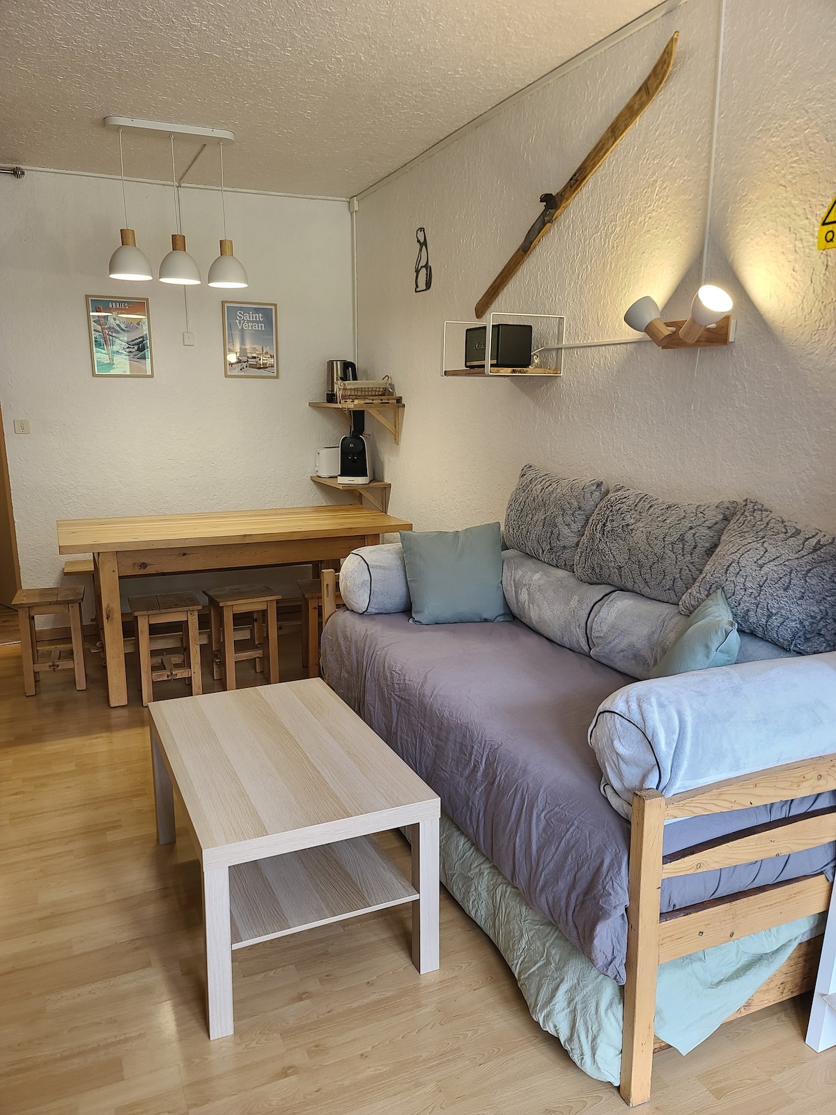Queyrasın bütün zənginliyindən zövq almaq istəyirsinizsə, Aiguilles kəndinin mərkəzində dəbli və mərkəzi yaşayış yeri rahatdır. Buz meydançası və bələdiyyə üzgüçülük hovuzu birbaşa piyada əlçatandır. Ağıllı şəkildə 4 nəfəri qarşılamaq üçün optimallaşdırılıb. Asan parkinqə imkan verən xüsusi parkinq, eləcə də xizək şkafı mövcuddur. İstək siyahısı, dağların mənzərəsindən zövq alaraq günəşdə kiçik yemək fasiləsinə imkan verən dam örtüyünün sığındığı balkon.
