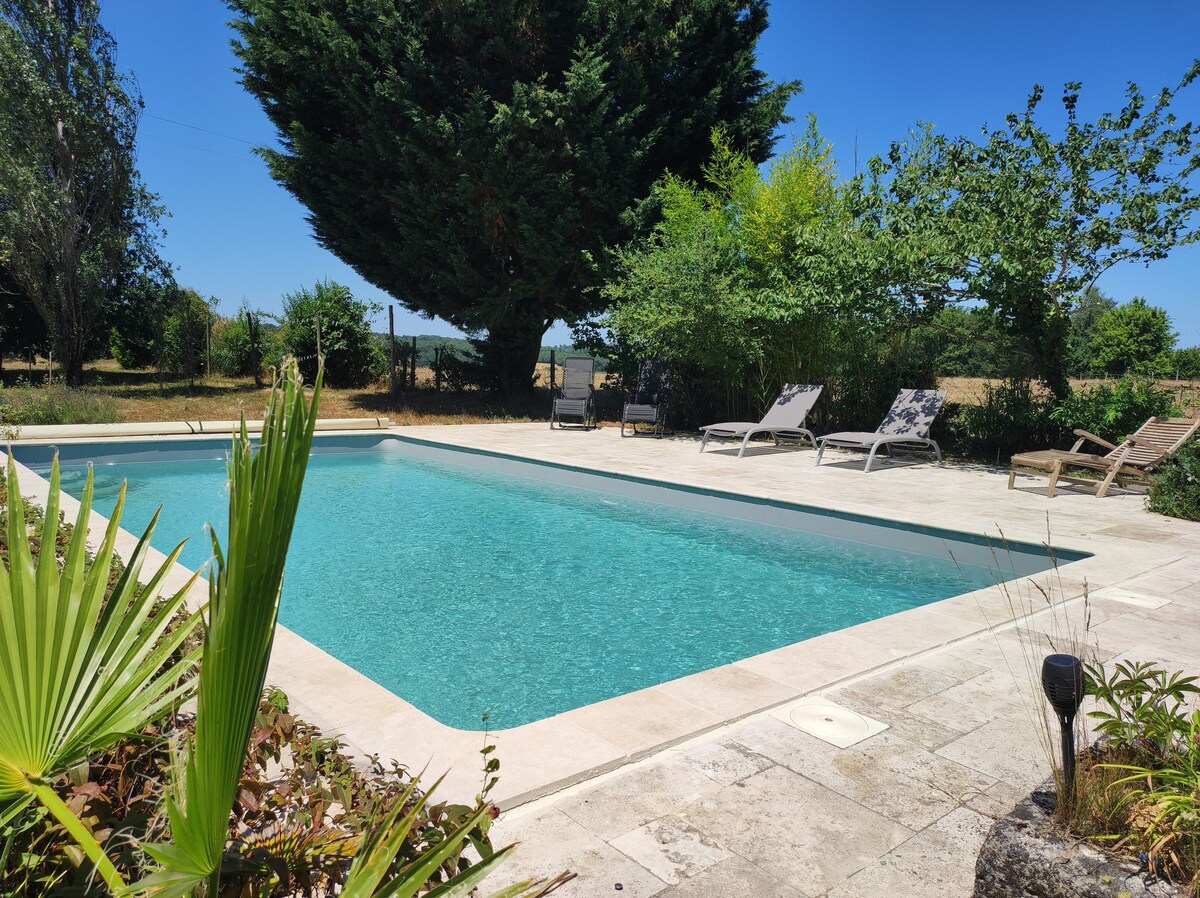 Light and airy open plan studio apartment, with private swimming pool FastWifi. Large Tv with French Amazon Prime and UK Freeview. DVD and Wii games console and accessories. French and English dvd's and board games. Kitchen area with hob, microwave and an airfryer for preparing light meals. Newly fitted shower room, ensuite. Large glass doors open onto a sunny, furnished decked area with bbq, overlooking the lake and woodlands. Private parking Many walks/cycling trails from the property