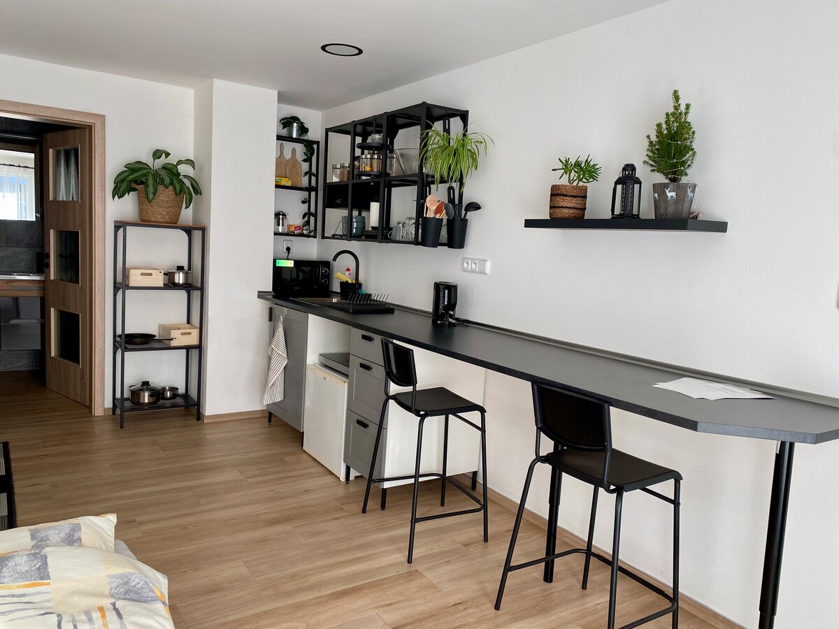 Ev sakit bir mühitdə, ailə evləri arasında yerləşir. Burada mən, dostum, oğlum Mattias və itimiz Arnoşt yaşayırıq. Evlər ayrıdır, buna görə də özünəxidmətli yerləşdirmə seçimini seçsəniz, çox sevinərik. Mənzil tam təchiz olunmuşdur və müasir, havadar üslubda tərtib olunub. Bütün evdə rahatlıq, xoş atmosfer, səliqə-sahman və sakitlik olmasını təmin etməyə çalışırıq.