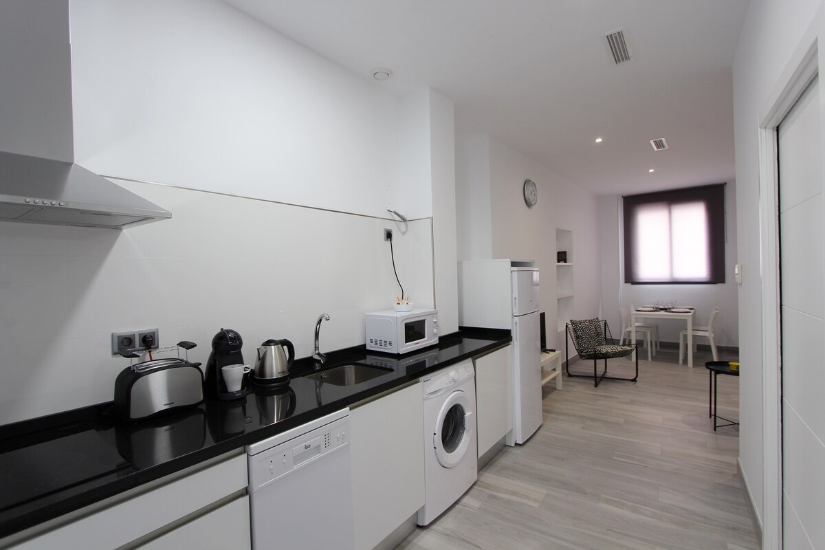 Málaga is the fifth largest city in Spain and one of the most important tourist destinations in the world. It has a very special charm that any visitor can feel in a short walk. The culture, traditions, gastronomy, an enviable climate and the hospitality of its people serve to consolidate the image of Malaga as a ´city of paradise´. Our apartments are located in Soho, in the historic center of Malaga. Home Art apartments Soho. This spectacular fully equipped apartment adapted for reduced mobility has a 1 bedroom with a large double bed of 1.60 meters. and sofa bed of 1.40 meters. as well as 1 full bathrooms adapted for reduced mobility with shower and hairdryer, towels and toiletries in addition to a living room from which you access the kitchen. It has a total area of 57 m2 and capacity for 4 people with air conditioning hot / cold Wifi, flat screen TV and in the kitchen has induction hob, fridge, freezer, washer dryer, microwave, oven, utensils / cooker, coffee maker , toaster and kettle