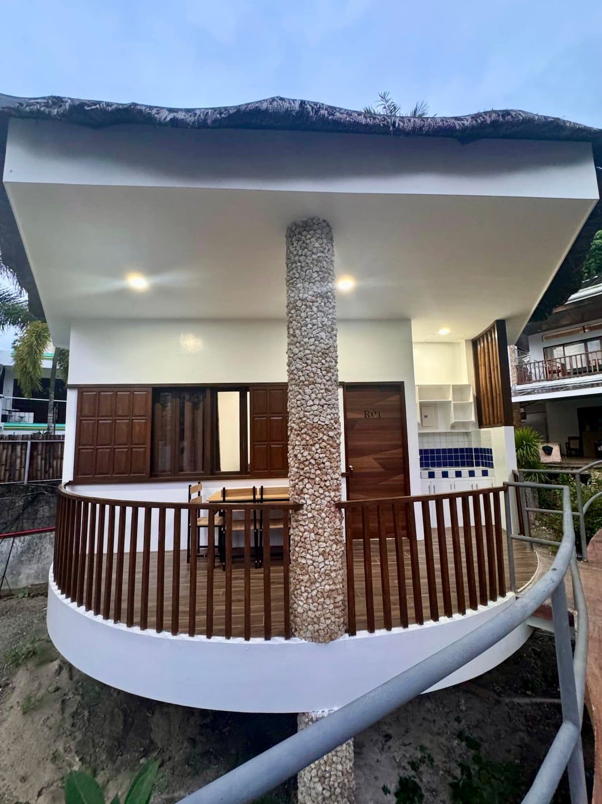 Bu unikal evin öz üslubu var. O, ideal yerdə yerləşir və Katiklan hava limanından qısa məsafədədir. Turist qaynar nöqtəsi Borakay ilə bərə limanı vasitəsilə 30 dəqiqə ərzində əlaqə saxlamaq olar. Kiçik yerli çimərliyə piyada 3 dəqiqəyə çatmaq olar. Yaxınlıqdakı Katiklan kəndində bazar və iaşə obyektləri var.