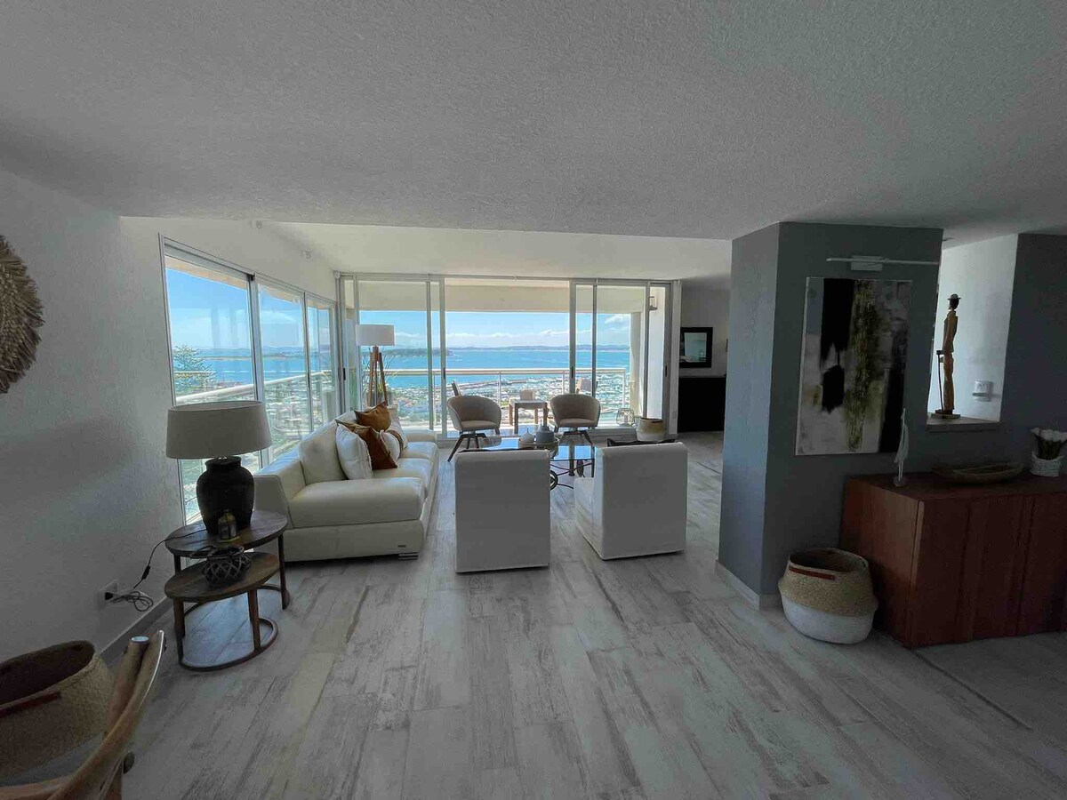 Espectacular piso en primera fila de playa mansa. Gran terraza muy disfrutable con vistas panorámicas a la bahía, a la isla, al puerto y al atardecer. 2 dormitorios y 2 baños. Cocina moderna, terraza lavadero. Aire acondicionado. Servicio de mucamas todos los días, wifi de alta velocidad y tv Smart Servicio de playa en verano. Edificio con recepción 24 horas Cochera para 2 autos (uno atrás del otro) Este depto tiene el mejor sol durante todo el año ya que es esquinero
