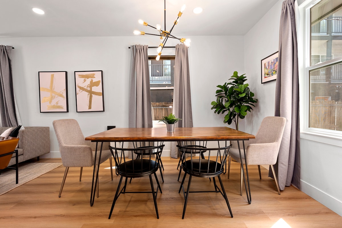 Featured in Remodelista, the Blush House is a design dream—skylit, with rose-gold fixtures, modern decor, and plentiful lounging space, it's fully-stocked with essentials and extras for a heavenly California stay. Catch rays or a meal on the wood deck. The light-drenched living room, picture-perfect blush kitchen, and eat-in nook are also central gems. Relax on the sofa with endless SmartTV options, or work (if you must!) at the gorgeous built-in desk. Easy, free parking on a safe street.