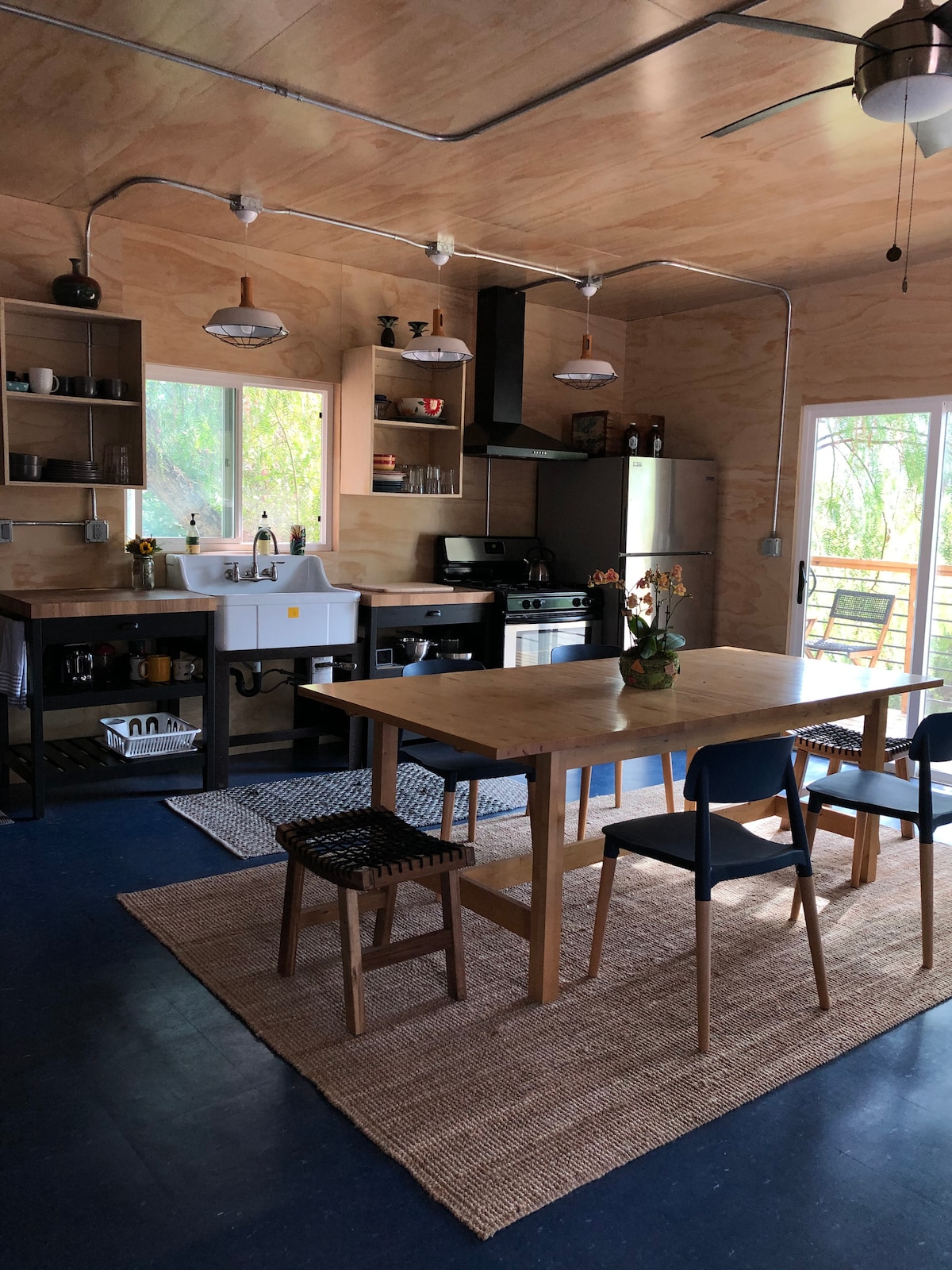 Mənzərədən maksimum yararlanmaq üçün dizayn edilmiş 70-ci illərdə tikilmiş 2 mərtəbəli məkanda vaxtınızı dəyərləndirin. Düşünülmüş şəkildə hazırlanmış vintaj parçaları çoxsaylı bitkilər, bol kitablar və səsyazma pleyeri ilə qarışır. Pəncərələrdən bol-bol canlıları seyr edin. QEYD: Vəhşi təbiət, atlar, itlər və geniş bitki massivi ilə əhatə olunmuş ərazidə yaşayırıq (qonşuluğumuz okean dəniz qatından ən yaşıl və sulu yer olduğu üçün Fernvud adlanır), buna görə də allergiya və ya astma varsa, bu yer sizin üçün yaxşı olmaya bilər. Biz də bəzən itlərə icazə veririk, yalnız əvvəlcədən təsdiq edildikdə. Üst yer parlaq və havalı və görünüşü haqqında bütün edir! Mətbəx 2-ci əl və yeni mətbəx alətlərinin qarışığı ilə doldurulur. Ev yeməklərinizi nümayiş etdirmək üçün mükəmməl olan gözəl taxta qablar və keramika yığmağı sevirəm. Mətbəxi zeytun yağı, balzam sirkəsi, dəniz duzu, sarımsaq, xardal, ketçup, soya sousu və s. kimi bəzi əsas faydalılarla təmin etməyə çalışırıq - bu yolla mağazada bir çox əşya yığmaq barədə stress keçirməyə ehtiyac yoxdur. Vanna otağı kiçik və minimaldır, lakin sizə lazım olan hər şey var. Çimərlik dəsmalları olan səbəti də daxil etdim. Taxta tavanlı və böyük şkafı olan açıq yataq otağına keçin. Yataq yeni Tuft & Needle King edir. Bəzi işləri yerinə yetirməyə ehtiyac duyduğunuz halda masanız var. Otaq qapalı və yarı açıq məkana açılır. Əsas evdə yol boyu yaşayırıq ki, məxfilik bölümü vasitəsilə aramızdakı inciklikləri görə biləsiniz. Bağda hər hansı bir otu və ya veggini paylaşmaqdan həmişə məmnunam. Məkanda beton döşəmələr və çoxlu təbii ağac elementləri var. Əşyaları rahat saxlamaq üçün hər otaqda divar qızdırıcısı var. Evimiz 60-cı illərdə tikilib, sonra isə 70-80-ci illərdə "Sülh təsərrüfatı" adlı hippi kommunası burada yaşayanda çox şey yeniləndi. Çox qəribəlikləri var, amma buna görə Topqayanı sevirik:) Verandanızın digər tərəfində iki bağ çarpayısı olan həyətimiz yerləşir. Onları yoxlamaqdan və bəzi bitkiləri seçməkdən çəkinməyin. Həyətimizdə tez-tez yenot, dələ, dələ və hətta bəzən ilan görürük, buna görə də həmişə gəzdiyiniz yerdən xəbərdar olun. Xüsusi girişiniz avtomobil yolundakı parkinq yerinizin yanındadır, buna görə də bizimlə heç qarşılaşmamaq şansınız var. Biz çox işləyirik və həmişə öyrənirik, lakin qonaqlarla görüşməyi çox sevirik, buna görə də görüşmək və bəzi yerli ipucları əldə etmək istəsəniz, əlçatan ola bilərik. Və ya istəsəniz, tamamilə məsafə saxlaya bilərik;) Bəzi mehriban qonşular və itlərlə tanış olmaq üçün gizli cığırı uzaqlarda gəzin. Mülayim okean körfəzi o deməkdir ki, yerli əhali bu ərazini "iqlim baxımından əlverişli Fernvud" adlandırır." Buradan Topqapının qərb tərəfində çimərliyə 15 dəqiqədən az vaxt qalıb. Biz kanyonun dağlıq hissəsindəyik, bu da ən yaxşı mənzərələr, eyni zamanda dar dik yollar deməkdir. Yavaş-yavaş götürün və təbiətin səslərindən zövq alın! Bu məhəllə allergiya üçün ideal olmaya bilən sulu landşafta görə Fernvud kimi tanınır. Los-Ancelesdə avtomobilin olması yaxşıdır, çünki o, çox geniş yayılıb. Siz bizim ev bizim kiçik Topanga şəhər gəzmək bilər, lakin haqqında 2 mil aşağı və sonra geri gəzmək lazımdır!! Biz bunu etmişik və pis deyil. Bizdən bir neçə addım aralıda bəzi möhtəşəm gəzinti yolları da var. Şəhərimizdə dağ velosipedi icarəyə götürə biləcəyiniz əla velosiped dükanı tapa bilərsiniz və onlar sizə harada gəzmək barədə tonlarla məlumat verəcək. Uber & Lyft burada tələb olunduqda gəlir, lakin bəzən bir az səbr tələb edir. Biz Topanga Blvd pulsuz küçə park ton ilə yerli çimərlik təxminən 10-15 dəqiqə sürücülük (pulsuz park zonasında əmin etmək üçün əlamətləri baxın). Siz bizim ev idarə ilk dəfə, Siz yolun küləkli əyriləri ilə həyata bir az freaked ola bilər! Bu, əbədi hiss oluna bilər, amma əslində əsas bulvardan evimizə cəmi 1 mil məsafədədir. Yavaş sürün və görməli yerlərə gedin... gözəl qaya quruluşları, krek və qəribə evlərlə oxuyan qurbağalar! Biz yeni insanlar ziyarət zaman çox həyəcanlı almaq iki kiçik xilasetmə itlər var, belə ki, itlər kimi deyilsə, bu ən yaxşı seçim ola bilməz;) Biz hər yerdə onları özümüzlə aparırıq, belə ki, dinc istirahət məhv hər hansı bir yappy itlər olmayacaq. Bundan başqa, biz atların yanında yaşayırıq, belə ki, gecə-gündüz maraqlı səs-küylər ola bilər. Parkinq kiçik kulinariyada çox məhduddur, odur ki, avtomobil yolumuzda təyin olunmuş yerdə park etdiyinizə əmin olun. Siz gəlməmişdən əvvəl mən sizə təlimatlar göndərəcəyəm. Siqaret çəkirsinizsə, verandanın təyin olunmuş külündən istifadə edin. Biz atəş zonasındayıq, ona görə də fırçanın yanında siqaret çəkməyin. Əgər içəridə siqaret çəkirsinizsə, depozitinizdən 200 dollar haqq almalıyam. Kanyonda siqaret çəkmək olduqca qaşqabaqlıdır, çünki hər kəs yanğınlardan narahatdır, buna görə də parıltının qarşısını almaq üçün bir vape qələmini gətirməyi məsləhət görürəm;) Mobil telefonun kanyonda qəbulu əla deyil, odur ki, Wi-Fi şəbəkəmizə qoşulana qədər heç bir xidmətin olmamasına hazır olun. Elektrik enerjisinin və internetin kəsilməsi, yolların bağlanması, evakuasiya, hörümçək toru və s. hallara hazır olun! Siz şəhərdə deyilsiniz və hər şey burada vəhşiləşə bilər;) Əksər Airbnb kimi bizim razılığımız olmadan əmlakda qeydiyyatdan keçməyən qonaqlara da