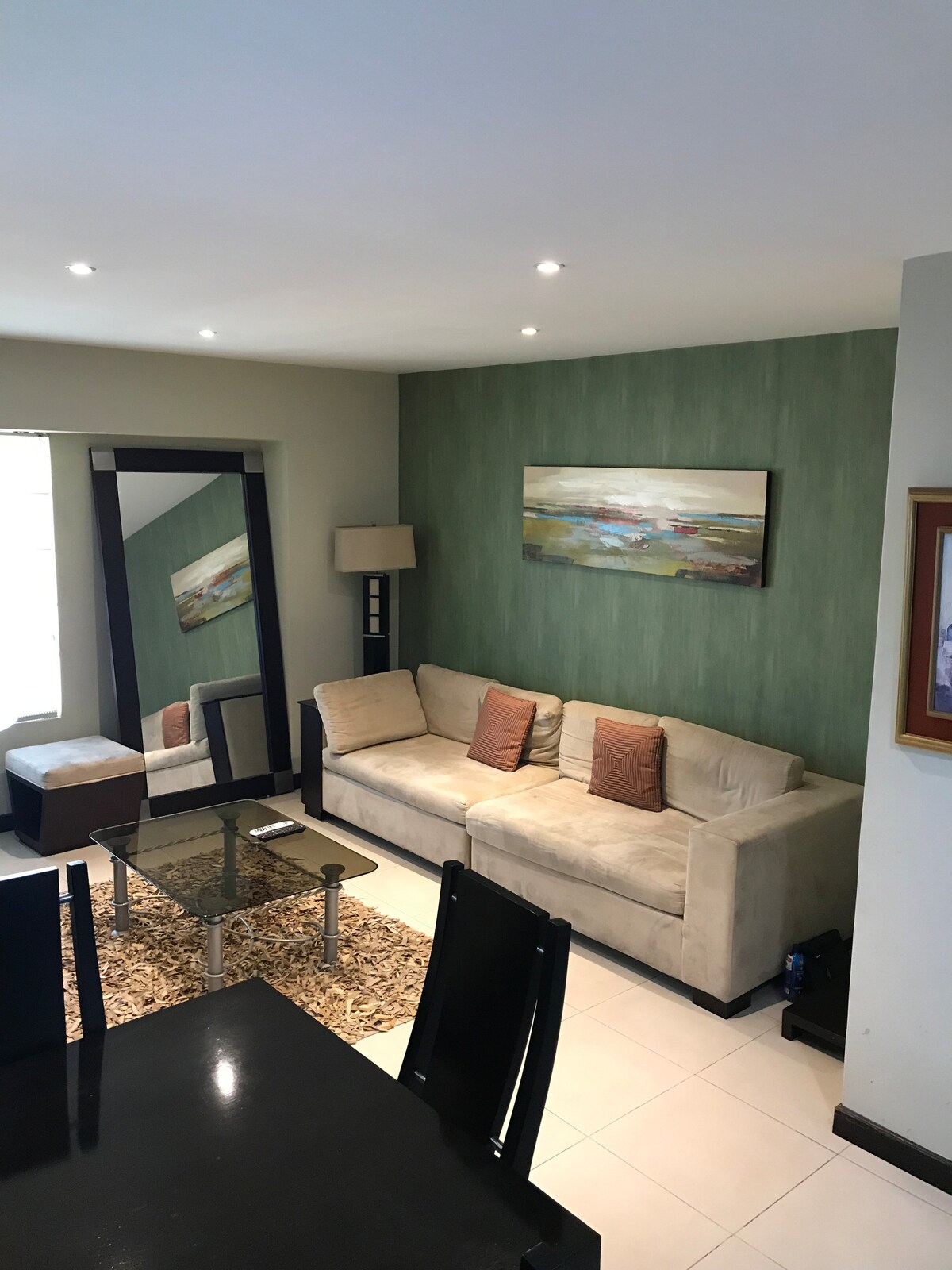 Mebelli süita, əla yeri olan 2-dən 3 nəfər üçün mükəmməldir. Burada özünüzü evinizdəki kimi hiss etməyiniz üçün bütün imkanlar var və gözəl təcrübə yaşaya bilərsiniz. *İmkanlar: - Netflix və Youtube ilə TV - Yüksək sürətli WiFi - Üzgüçülük - İdman zalı *Yer: Omnihospital yanında (24/7 Aptek) Hava limanı avtomobil ilə 5 dəqiqə Mall del Sol ilə üzbəüz Konvensiya Mərkəzinə yaxın. *Parkinq: - İctimai (Binadan kənarda pulsuz) - Ayrıca (mövcudluğa əsasən gecəlik 8-10 dollar)