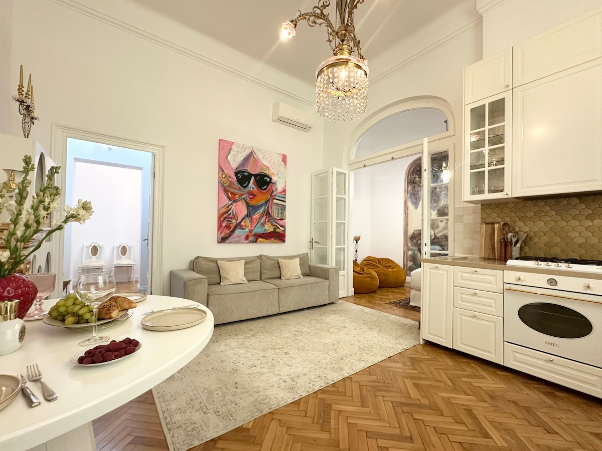 Buxarest şəhər mərkəzində, Calea Victoriei küçəsində lüks şəhər mənzili: şəhərin əsas bulvarında yerləşən müasir premium mənzil. Qonaq otağında şüşə divarlı ayrıca sauna, yataq otağında sərbəst vannası və romantik ab-hava üçün fon işıqlandırması var. 4 nəfər yata bilər (150-179 sm-lik çarpayı və divan-çarpayı). İş və istirahət üçün sürətli 1 Gb/s Wi-Fi, Smart TV, tam təchiz olunmuş mətbəx, eyvan, paltaryuyan və quruducu maşın, asan öz-özünə giriş. İki-üç dəqiqəlik piyada məsafədə Köhnə Şəhər, Rumıniya Ateneumu, muzeylər, metro, restoranlar və kafelər var. Hər yerə piyada gedə bilərsiniz.