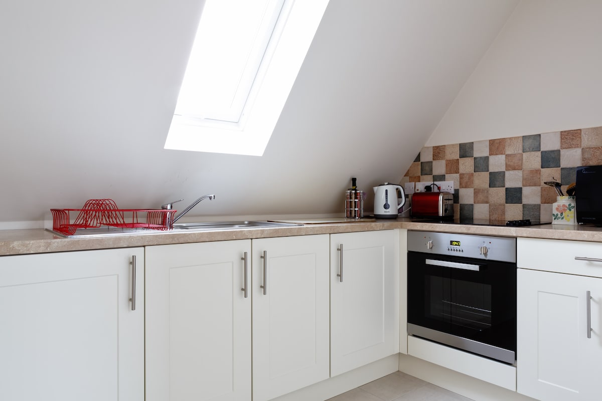 A spacious, light & airy ground floor studio apartment with separate shower room set in beautiful surroundings. The apartment is close to the Cotswold Farm Park, located in the grounds of a 48 acre livery business, the apartment has fantastic views across the lawns, to the horses in the paddocks and beyond. This apartment has a fully equipped kitchen and is decorated to give it a Cotswold farmhouse feel, it has it's own entrance, with off street parking.