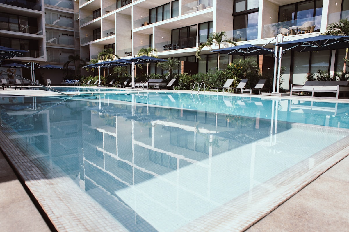 ★ READY FOR MARCH 2026 - PLEASE READ EVERYTHING ★ At the center of Playa del Carmen @ 28th Street 1 minute walk to the Caribbean Sea! Just steps to the famous 5th Ave in front of Beach. Great for groups & families ➤ Surrounded by restaurants & entertainment ➤ Between 5th Ave and Beach ➤ Walk Score 98 out of 100! Close to everything ➤ Mamita's Beach Club Perks! ➤ Private Terrace ➤ 2nd floor ➤ Elevator ➤ Private parking (1) ➤ Pool ➤ Full gym ➤ Equipped Kitchen ➤ Washer&Dryer