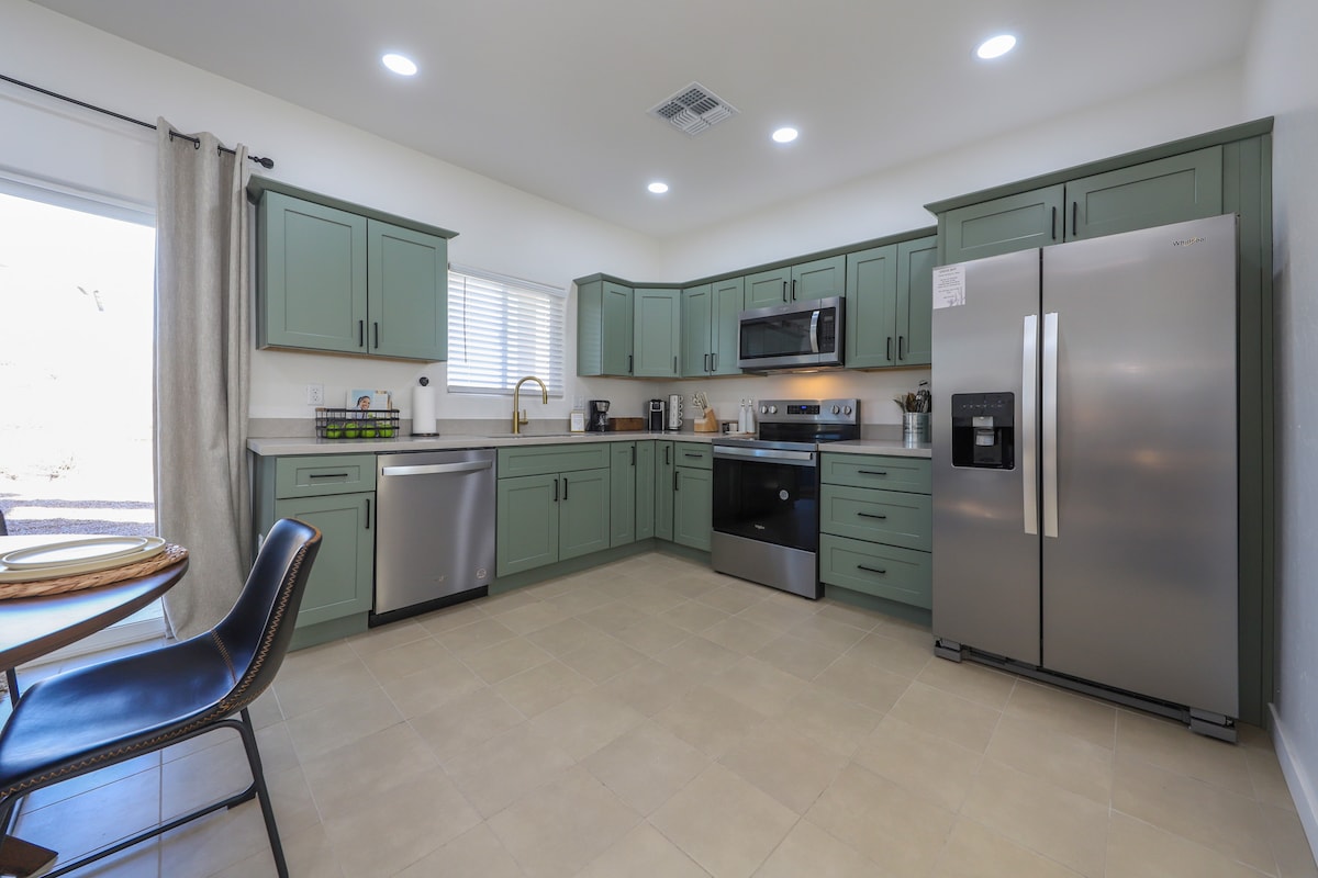 Taksonda gizli bir incidir! Ev klassik adobe üslubunda Santa Fe Stil Evidir. Evin bütün komfortlarından zövq alın, gözəl, tənha, arxa həyətdə tam hasarlanmış, ayrıca cakuzi və hovuzu olan yerdə dincəlin. Yemək sahəsi 8-ə qədər yerləşə bilər, mətbəx bütün zəruri ləvazimatlarla tam təmin olunub. Printer və kağızı olan kiçik və funksional ofis sahəsi və camaşırxana var. Ağıllı televizorları, sürətli interneti, yüksək keyfiyyətli yataq dəsti və tavan ventilyatorları olan 3 rahat yataq otağı var.