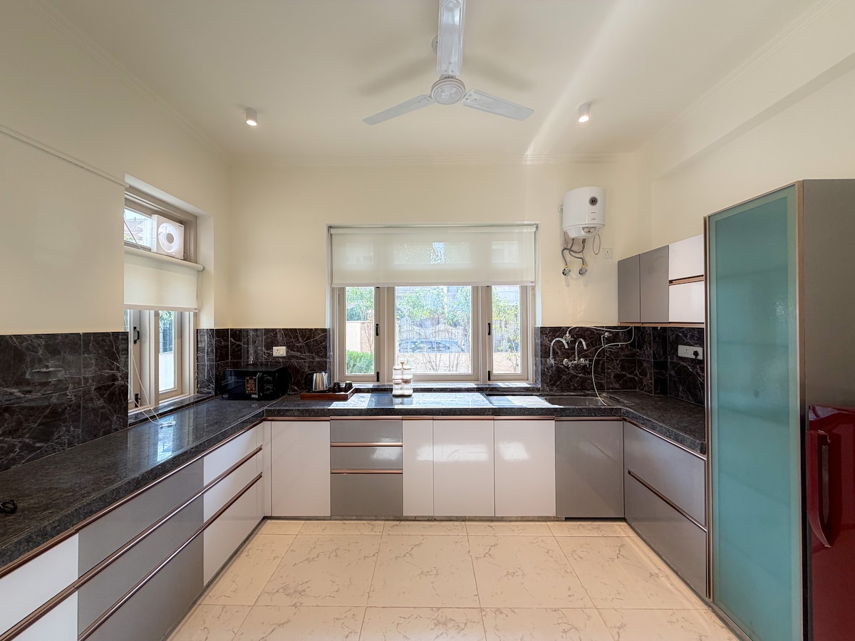 Escape to a peaceful, tree-shaded villa in Jaipur—cool and comfortable even in the summer. This fully air-conditioned 3BR home offers fast WiFi, a private green courtyard, and quiet surroundings. Ideal for families, remote work, and long stays, with privacy and a true home-like feel. What You'll Love • Entire private villa • Bright living area • Fully equipped kitchen • Clean bathrooms with 24/7 hot water • Fast, reliable Wi-Fi (work-friendly) • On-site parking