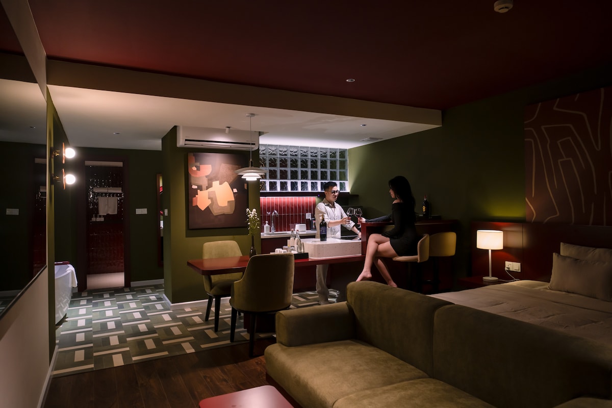 Da Nanq şəhərinin mərkəzində yerləşən Delüks otağın sahəsi 30m² -dir, ayrıca balkon və böyük pəncərələri var və təbii işıqla dolu məkan təmin edir. Otaq müasir dizaynlı, masası olan gənc mebeldir – həm istirahət, həm də biznes üçün idealdır. Hamam otağı ayrıdır, təmiz və rahatdır, balkondan rahatlaya və şəhərin təmiz havasından zövq ala bilərsiniz. Əyləncəli yerləri, məşhur yerli yeməkləri gəzmək və ya Əjdaha Körpüsünə getmək üçün sadəcə bir neçə dəqiqə vaxtınız var.