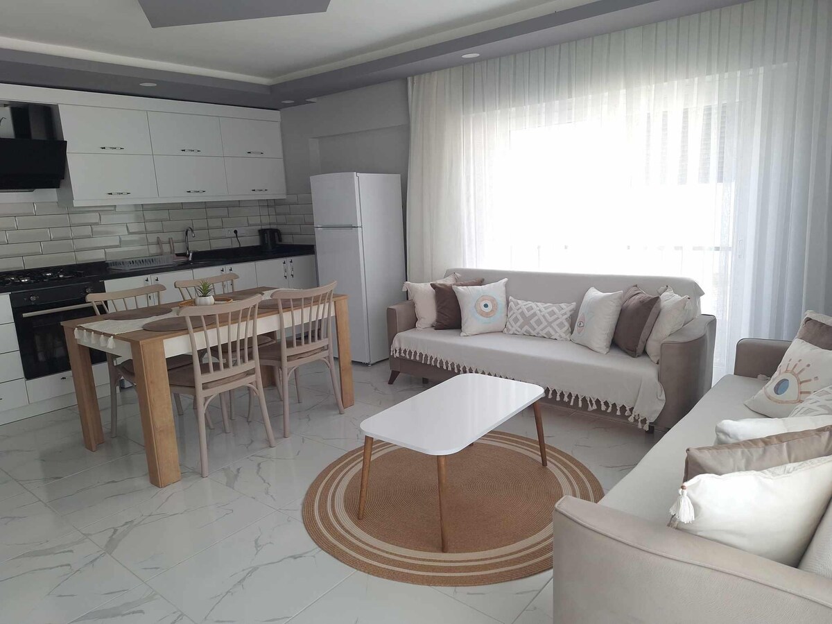 Enjoy a peaceful stay in our modern 2-bedroom apartment in central Side. The beach is just 800 m away, and restaurants, cafés, the seaside promenade, and Side Ancient City are all within a few minutes’ walk. Set on a quiet street, the home also features a relaxing garden with a BBQ, and it’s pet-friendly Highlights: • 800 m to the beach • Walk to restaurants & Side Ancient City • Free Parking • Pet-friendly • Garden with BBQ • Clean, modern 2BR comfort