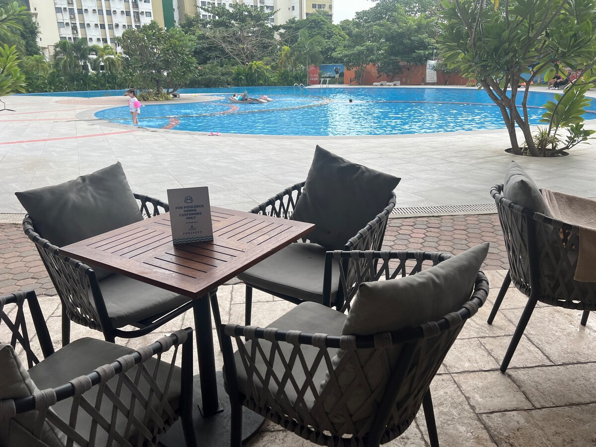 Executive Studio for 2 people 15 minutes to Airport New quality Queen Bed & Sofa Free filtered Drinking Water,Japanese Dispenser Wi-Fi/SmartTV/FreeNetflix Safe Smart Lock Hot Shower, Bidet FullyEquipped Kitchen Balcony,Seaviews&Breezes GordonRamsay/Japan/Korean/Spanish/Filipino Restaurants,retail Concierge,Pools,24hrSecurity Supermarket, Bakery,Starbucks,McDonald’s, Pharmacy. 400m walk to Beach, Beach Passes Php350/person daily NOTE:Construction/Noise next door.Discounted daily rate is 30%