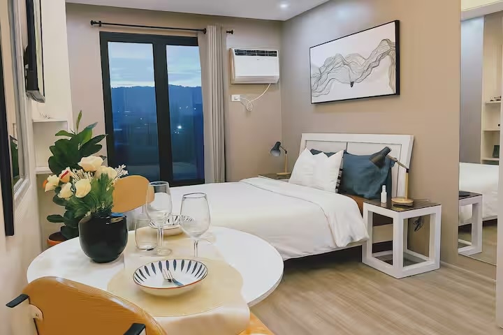 🏩 Cozy Cove Cebu 🏩 Previously a hotel room under the management of Noble Hotel ✨ Escape to Grand Residences Cebu, a modern Airbnb perfect for travelers, digital nomads, & staycations! Prime location—walk to IT Park, near Ayala Center & Cebu Business Park. Your perfect home away from home awaits. Enjoy a balcony with pool views, hi-speed WiFi, Smart TV w/ Netflix, full kitchen, & guest kit. Access premium amenities: pool, gym, Skydeck 360 Restaurant & Lounge, clubhouse, sports bar & more