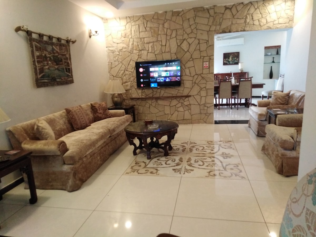 Ravalpindidə Ayub Parkına mənzərə açılan və təhlükəsiz, qapalı yerdə pulsuz parkinqi olan nadir yerlərdən birini kəşf edin. TV otağı və Wi-Fi daxil olmaqla, böyük ailələri yerləşdirmək üçün kifayət qədər geniş sahəsi olan böyük villa. Lazım gələrsə, əmlakda əlavə qonaq otaqları və sürücü üçün yaşayış yerləri bron edilə bilər. Sorğu əsasında təmizlik və dəstək xidmətləri də təklif olunur. DHA1-dən 5 dəqiqə, Bahriyadan 10 dəqiqə və İslamabaddan avtomobillə 30 dəqiqəlik məsafədədir.