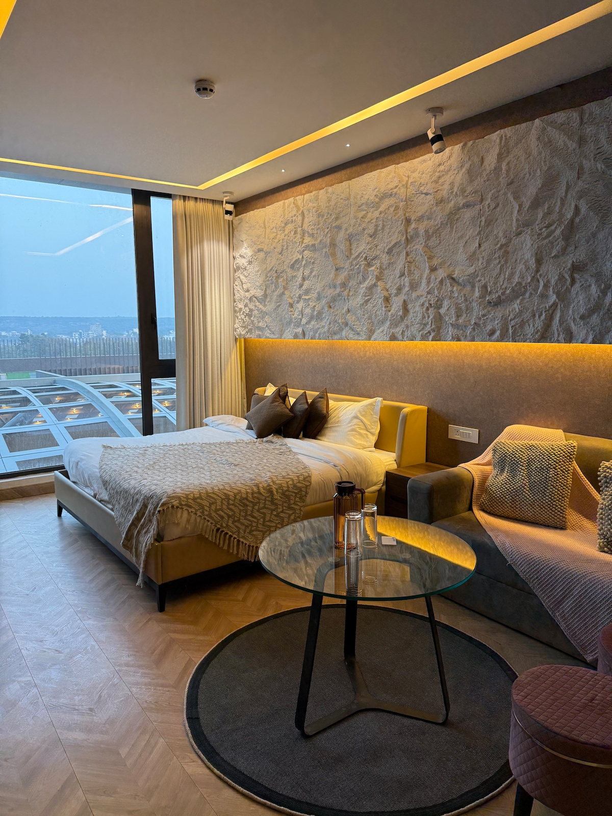 Merakii Hospitality brings you yet another absolutely stunning space to enjoy a stylish experience at this centrally-located place in Gurgaon on the Golf course extension road offering you the view of the very gorgeous skyline of the city. The space also offers you tons of facilities to make sure you aren’t left behind while on vacation. INOX Cinemas ; Cafe Delhi Heights ; Haldirams ; Blue Tokai for your favourite cappuccino with two shots of espresso by the side.
