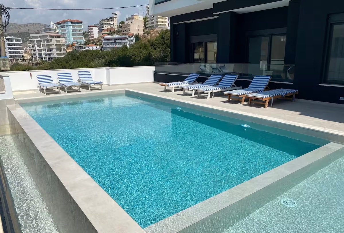 Albaniyanın Saranda şəhərindəki Afrika Çimərliyinin dolğun sahilləri boyunca yerləşən görkəmli super lüks mənzilimizdə tiranlıq və sakitlik aləminə daxil olun. Hər qürubun üfüqdə şah əsər çəkdiyi cakuzi ilə təchiz edilmiş geniş terrasınızdan İon dənizinin misilsiz gözəlliyindən zövq alın. Bu incə istirahət məkanı ən ağıllı səyahətçilərin gözləntilərini üstələmək üçün hazırlanmış Aralıq dənizi zərifliyi və müasir rahatlığın harmonik qarışığını təklif edir.