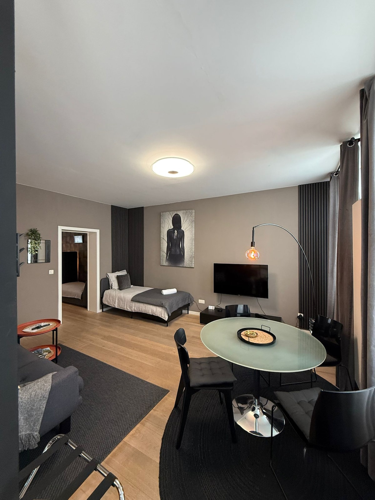 Luxueux appartement une chambre dans un petit immeuble de standing entièrement rénové, situé dans le centre historique de Bruxelles, à proximité des Halles Saint Gery. Designé par une décoratrice professionnelle, l'appartement se situe au premier étage ( sans ascenseur). Vous bénéficierez de tout le confort nécessaire à votre séjour (cuisine entièrement équipée, machine à laver et sèche linge dans l'immeuble, wifi, literie de qualité hôtelière, linge de lit et de bains, produits d'accueil).