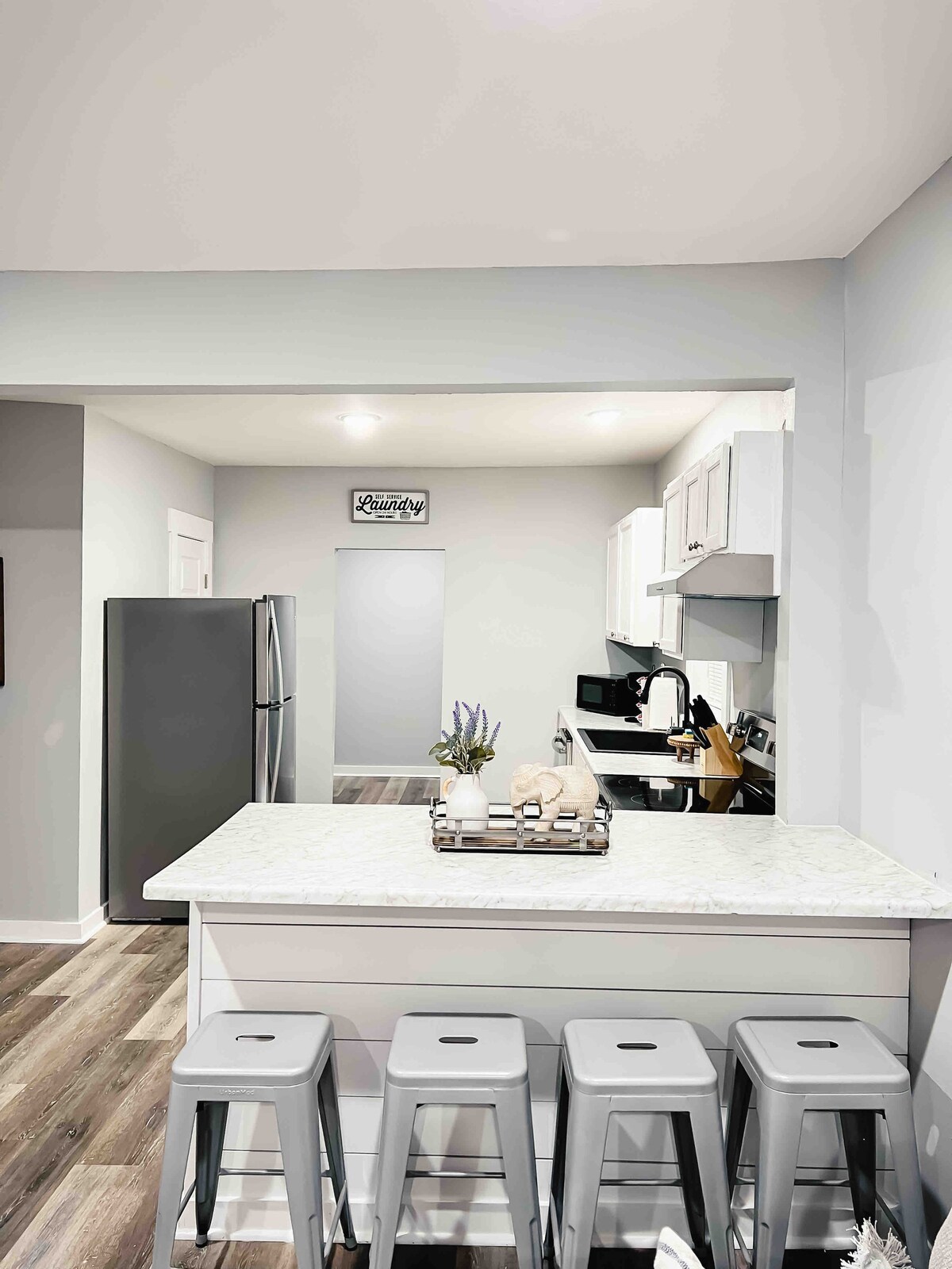 The Porches West-dəki ən yeni AirBNB, The Caul House bütün xüsusiyyətləri 1 bd, 1 hamam döşəmə planına yığır. Böyük ölçülü ön qapını hündür tavanlara və geniş yaşayış sahəsinə açın. Ağıllı avadanlıqlarla dolu mətbəxdə böyük kvarslı ada var. Ev qonaqlamanız zamanı yığılmış paltaryuyan və quruducu camaşırxana ilə təchiz edilib. Arxa tərəfdən örtülü parkinq tətil zamanı stresdən azad qablaşdırma və qablaşdırmanın açılması deməkdir. Arxa qapınızın çölündə yeni park yaradın