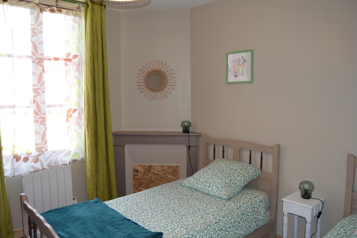 Petite maison de charme entièrement rénovée, à seulement 7 min à pied du centre. Idéale pour 2 à 4 personnes, elle offre une grande chambre, un salon cosy avec canapé convertible, une cuisine équipée (four, micro-ondes, cafetière Tassimo, vaisselle…) et une salle de bain moderne. Décoration soignée, Wi-Fi, TV, linge et serviettes fournis. Quartier calme, stationnement gratuit et facile juste devant la maison. Nous serons ravis de vous accueillir et de vous aider à découvrir notre belle région.