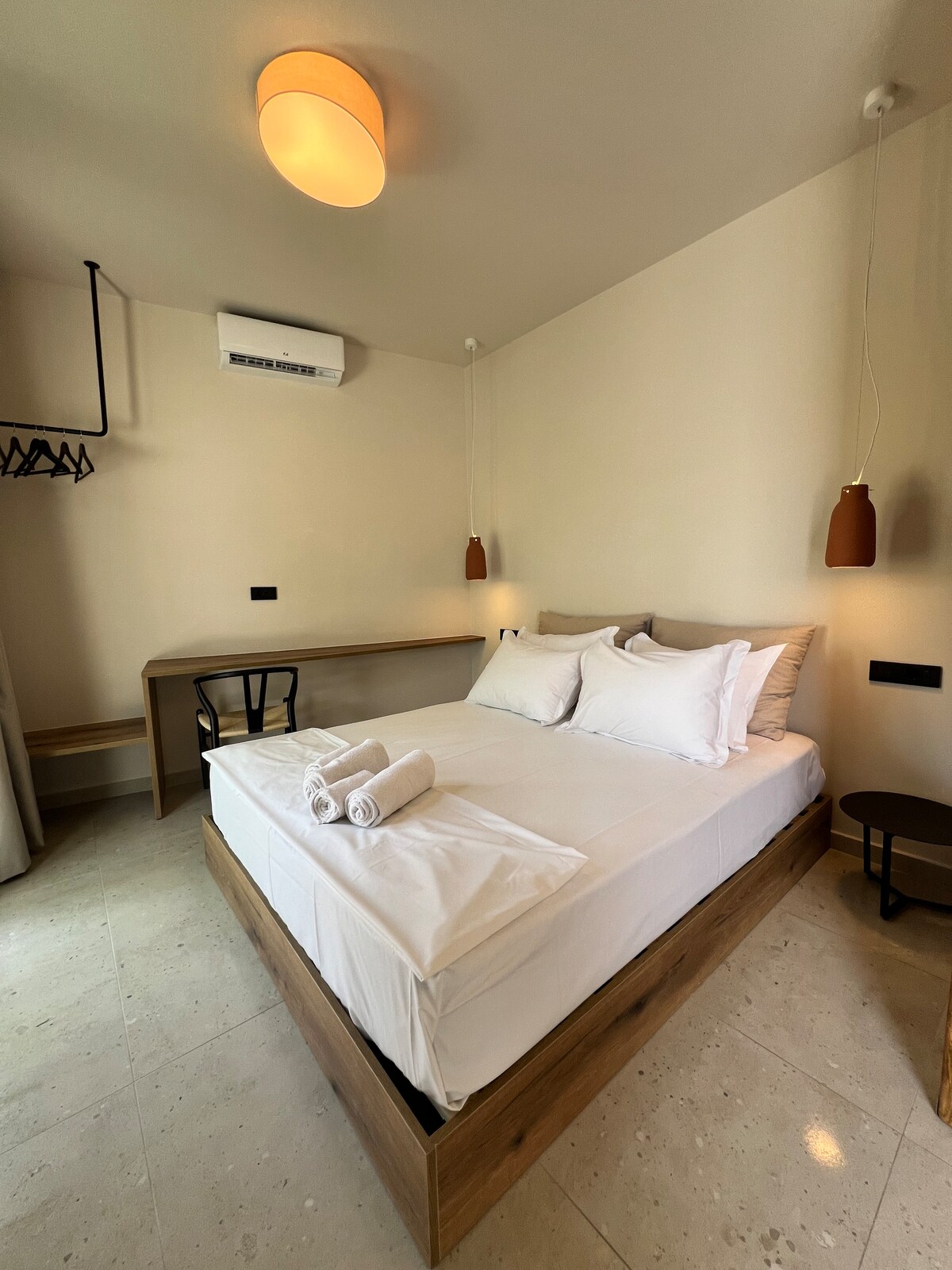 Aqios Nikolaos şəhərinin mərkəzində yeni ev. Unudulmaz qonaqlama üçün hər cür şəraiti olan 3 nəfərlik geniş otaq. Aqios Nikolaos meydanı 2 dəqiqəlik məsafədədir və çimərliyə 1 dəqiqəlik məsafədə yerləşir. Evin yanında kiçik ödənişlə park edə biləcəyiniz mütəşəkkil parkinq var. Ev mətbəx və divan çarpayısı olan qonaq otağının daxil olduğu əsas otaqdan ibarətdir. Yataq otağında ikinəfərlik çarpayı və ehtiyac olarsa, körpə üçün kotlet var.