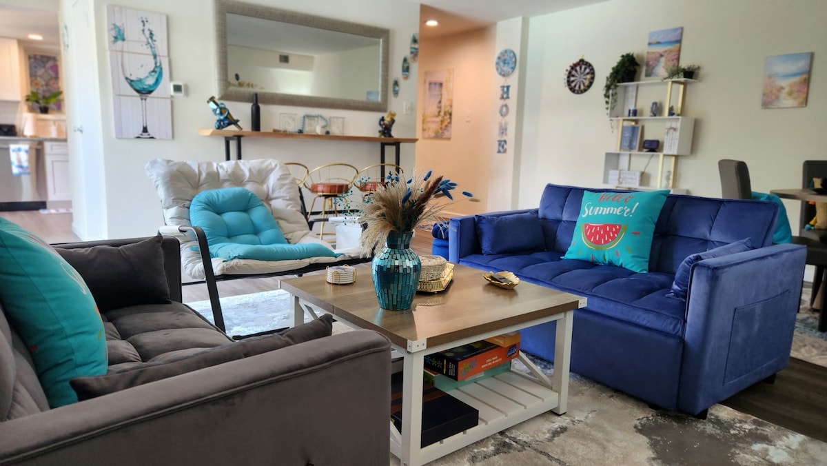 2 nəfər üçün mükəmməl kiçik kondominium. - Məxfi, yataq dəsti, əsas tualet ləvazimatları, Netflix ilə Smart TV, WI-FI və kondisioner ilə təchiz olunmuşdur -Əlavə üstünlüklər: 2 çimərlik etiketi, 2 çimərlik dəsmalları, 2 stul, 1 çətir, pulsuz qəhvə. - 302 nömrəli mənzilin xüsusi dayanacağı yoxdur, lakin yaxınlıqda küçədə dayanacaq, piyada məsafədə dayanacaqlar, yaxınlıqda sayğaclı dayanacaq kimi bir neçə seçim var -Tikinti İmkanları: Yerində camaşırxana ləvazimatları, açıq havada duş. Giriş: 16:00 Çıxış: 11AM