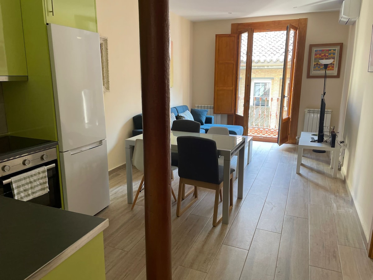 Zaragoza şəhərindən 45 km məsafədə yerləşən kənddə kiçik tam mənzil. İki nəfər üçün idealdır. İçərisində duşu olan çox işıqlı, yataq otağı, ikinəfərlik çarpayı,balkon və vanna otağı. Açıq mətbəxi və mebelli terrası olan zal. Kondisioner və istilik sistemi. Wi-Fi. Xüsusi girişi olan mənzil. Yalnız bir yataq otağı . Dörd nəfər yatır. Divanda iki nəfər yatır. Kəndin girişində və təbiətdən və sakitlikdən zövq almaq üçün gözəl gəzintisi olan bağın yanında yerləşir.