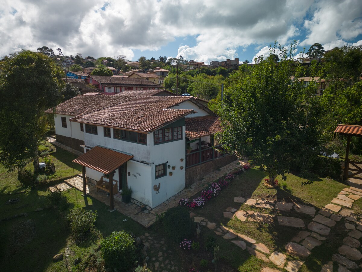 Casa completa, dentro do vilarejo de Lavras Novas, pertinho de tudo. Ideal para casais, família e turma de amigos, comporta de 2 a 8 pessoas. A Casa Rubi possui uma mistura de romantismo e decoração rústica. Vista linda das montanhas. 2 pavimentos muito aconchegantes. 3 Quartos, 3 Banheiros, 4 Camas de Casal e quintal. Sua localização é excelente. Próxima ao Mirante do Descansador, caminho das cachoeiras. Você pode ir caminhando 5 minutinhos até a linda igrejinha no centro do vilarejo.