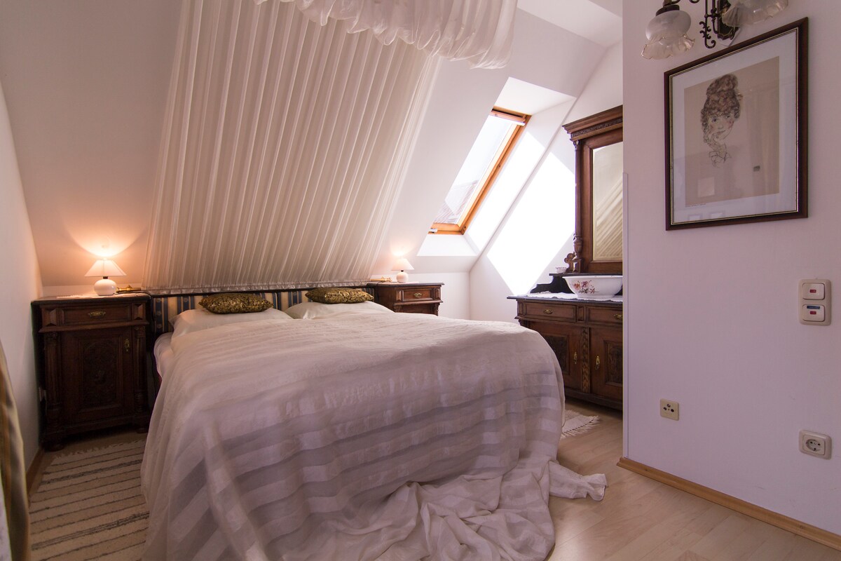 Mansard mənzil/studiya (pilləkənlər 2-ci mərtəbə) bütün lazımi mətbəx və digər avadanlıqlarla təchiz olunub və maksimum 2 nəfər üçün uyğundur. Bir çarpayısı var (190x200). Mənzil Celje qəsrinin ətəklərində yerləşir və ətrafı yaşıllıqlarla əhatə olunub. Şəhərin mərkəzi/qatar stansiyası mənzildən (20dəq/1,3km) dayanır, ən yaxın ərzaq mağazası 1 km məsafədədir.