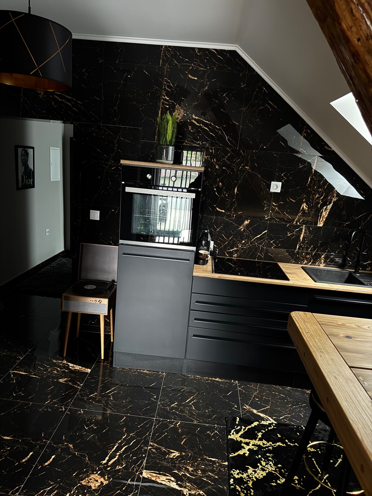 Bu mənzil Maribordakı qonaqlamanızı unudulmaz etmək üçündür. Təmir edərkən binanın ilkin antik quruluşuna sadiq qalmağa çalışırdıq ki, mənzilin sahəsi cəmi üç sahəyə bölünsün. Lakin bütün otaqlar çox böyükdür. Əsasən qonaq otağı, mətbəx və yemək sahəsi bir böyük məkandır. İş üçün səyahət etməyiniz ehtimalına qarşı yataq otağına mini ofis məkanı və vannası olan sauna əlavə etdik, beləliklə, özünüzü spa mərkəzindəki kimi hiss edəcəksiniz.
