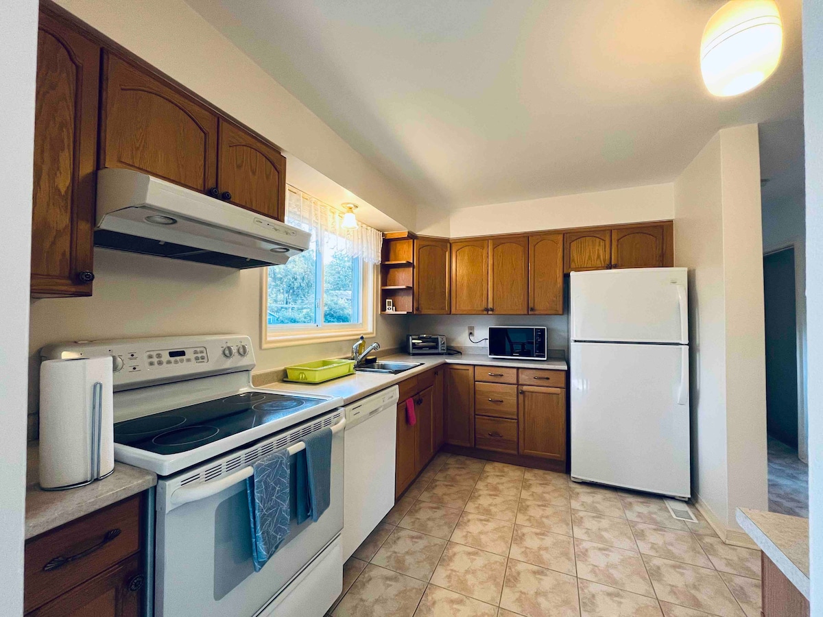 Port Kreditdə rahat və geniş zirzəmi suit. Ayrı giriş, ayrıca mətbəx və 3 hissəli hamam otağı. Yataq otağında rahat 150-179 sm-lik çarpayı və masa var, istirahət və ya iş üçün mükəmməldir. Sürətli Wi-Fi və avtomobil yolu parkinqi daxildir, əmlakda camaşırxana mövcuddur. Avtobus dayanacağına qısa bir piyada məsafədə Port Credit GO Stansiyası və Square One-a asanlıqla çatmaq olar, Sherway Gardens və Dixie Outlet də yaxınlıqdadır. Məkan diqqətlə təmizlənir və təhlükəsiz, qonaqpərvər qonaqlama üçün düşünülmüş şəkildə hazırlanır.