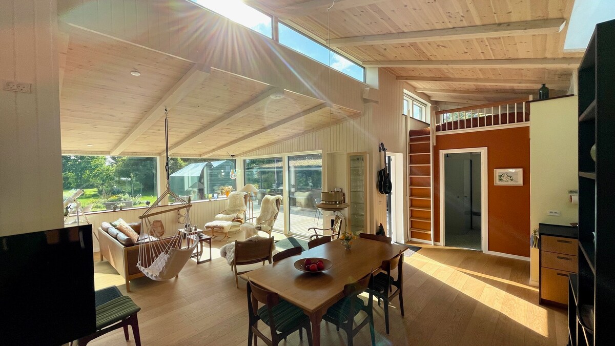 Hündür tavanları, qeyri-adi bucaqları və valehedici işıqlı otaqları olan, həqiqətən unikal, yaxşı təchiz olunmuş və əlçatan kottecdə dincəlin. Sakitlikdən, təbiətdən və dənizin səslərindən zövq alın. Rahat guşələri, ziyarət maralları və evdən 100 metr məsafədə qumlu çimərliyə birbaşa çıxışı olan böyük terrası araşdırın. Ev teleskopu və günəş binoklları vasitəsilə günəşi və qaranlıq "Qaranlıq Səma" səmasını yaşayın. Musiqi alətlərindən və səs sistemindən istifadə edin və ya kanoe, iki dəniz kayakları və ya üç avarçəkmə taxtası (Sup) ilə suda gəzintiyə çıxın.