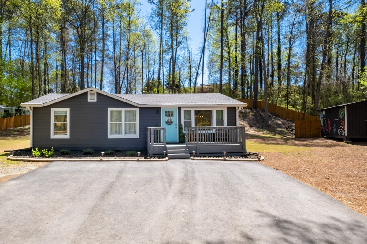 Ağaclarda yatın..Bura fasiləyə ehtiyacınız olduqda gəlmək üçün mükəmməl yerdir. Bu gözəl ağac ev 75/285-dən 5 hektarlıq meşəlik əmlak dəqiqələrində və Batareya və Truist Parkından 2 mildən az məsafədə yerləşir. Buxarıdan keçən parıldayan yolla gedərkən 3 körpüdən eyvana keçərək evə daxil olursunuz. Tam mətbəx, hamam otağı və lifli interneti var. Yataq loftunda gəmilər üçün nərdivan və yumşaq döşəkağıları olan çarpayı var. Enerji toplamaq üçün həqiqətən möhtəşəm yer. Bu gün bron edin